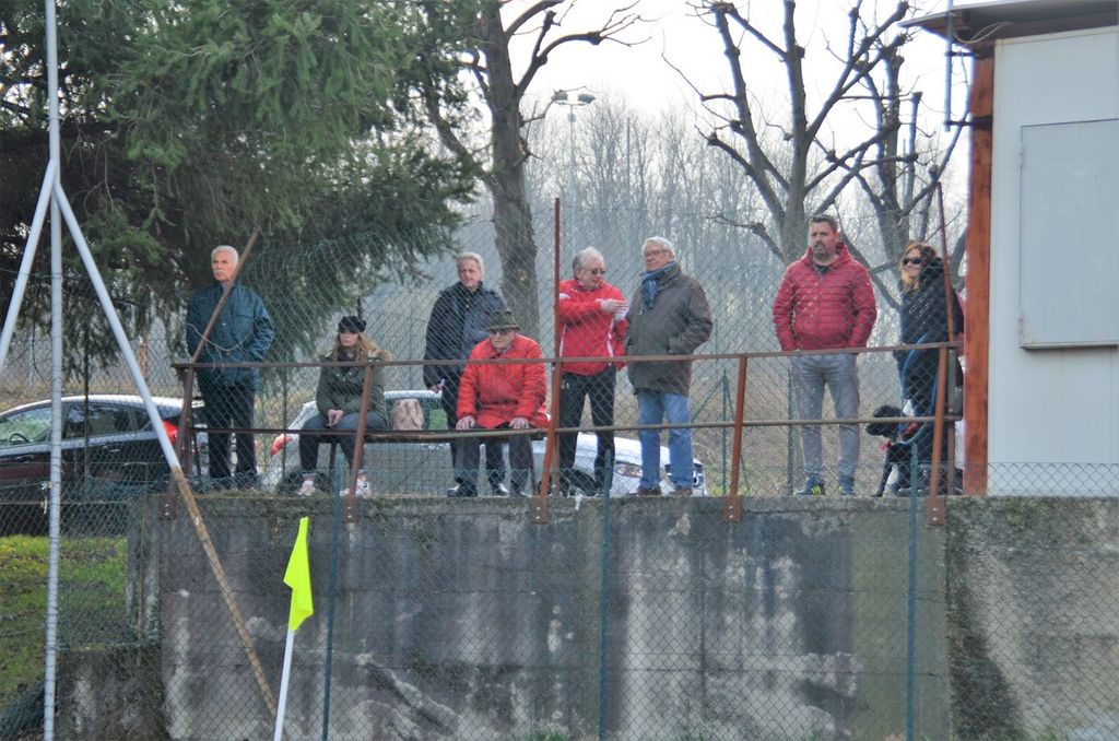 Tra gli oltre duecento spettatori (molti ospiti, calorosissimi: alla fine scoppia anche un petardo) ammassati tra le piante, sui campi, a bordo strada o in piedi sulle sedie che circondano il centro sportivo comunale delle Bustecche (che per essere davvero comunale dovrebbe avere almeno una tribuna agibile, i servizi igienici e un bar), ci sono tanti volti storici della tifoseria biancorossa. Si va dalla curva a Lele Bellorini, dal mitico Rinaldo ai sempre presenti di Passione Biancorossa, dal giudice pavese Luigi Riganti a "sua maestà" Pietro Frontini, dal supertifoso Giancarlo (la torta dopo partita per la squadra è stata preparata dalla sua Malvina) all'allenatore dell'indimenticabile salvezza in serie B al Piola: Stefano Bettinelli.