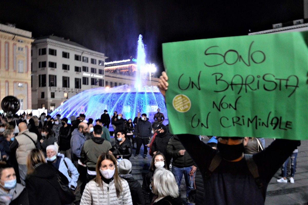Serata ad alta tensione ieri nel centro di Genova, anche se le dimostrazioni non sono sfociate in veri e propri scontri, né si sono visti danneggiamenti o scene di saccheggio che invece hanno caratterizzato le proteste contro le restrizioni anti Coronavirus in diverse altre città italiane.