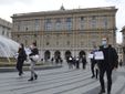 I lavoratori in piazza oggi, oltre che rivolgere un appello alle istituzioni affinché si prendano carico di mettere finanziariamente il settore in grado di sopravvivere, chiamano a raccolta da una parte i sindacati e le altre categorie produttive in difficoltà al fine di unire le forze per ottenere più attenzione da Governo, Regioni e Comuni: "Siamo qua innanzitutto perché diversamente che nel resto d'Italia in Liguria non è possibile manifestare, diritto che reclamiamo - spiega un lavoratore -. Abbiamo deciso questa iniziativa spontanea senza l'appoggio dei sindacati, ai quali chiediamo maggiore attenzione alle istanze dei lavoratori, per ricordare a istituzioni e cittadinanza come la nostra categoria abbia da subito messo in pratica tutele le misure necessarie per continuare a lavorare in sicurezza. Mentre la ristorazione è riuscita ad ottenere maggiore libertà di azione durante l'estate il nostro lavoro non è mai ripartito, ma ora che il coprifuoco colpisce le attività di somministrazione mi auguro ch le proteste non siano più settoriali. Io faccio sia il tecnico che il cameriere, e mi auguro che non si stia più chiusi nelle rivendicazioni che riguardano la propria categoria, ma che si lotti insieme avendo in mente il quadro d'insieme. Quest'emergenza sanitaria è diventata politica e sociale: vogliamo una riforma strutturale del settore dello spettacolo e della cultura. Non possiamo più accettare lo scarica barile politico fra i vari livelli di governo o fra la destra e la sinistra: vogliamo un dialogo vero oltre le fazioni e oltre le bandiere".