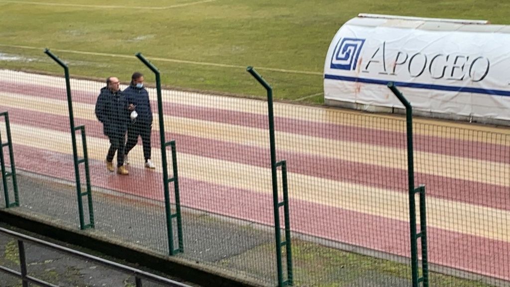 2' - Ci sono zone del campo completamente allagate, in particolare la fascia sotto la tribuna.