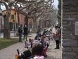 Ieri, venerdì 12 marzo, nel pomeriggio, 13 bambini della scuola primaria che hanno svolto didattica a distanza lungo viale Dante a Torre Pellice, davanti all’ingresso dell’istituto comprensivo Gianni Rodari. L’iniziativa fa parte delle proteste per la chiusura delle scuole organizzate dai genitori degli istituti comprensivi della Val Pellice assieme al Comitato Priorità alla Scuola. “Hanno fatto lezione dalle 14,30 alle 16,15 ed erano molto contenti perché hanno potuto seguire le lezioni con attenzione ma anche salutarsi nella pausa tra un modulo e l’altro” spiega Sara Tron del Comitato Priorità alla Scuola.