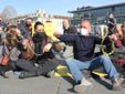 Giancarlo Nardozzi, presidente del Goia, spiega le ragioni della protesta: “Ci siamo seduti e incatenati perché difendiamo il nostro posto di lavoro: non ci fanno lavorare e gli abusivi si mettono al posto nostro, almeno gli facciamo capire che ci siamo”. “Abbiamo bisogno di lavorare, siamo al filo della disperazione” ribadisce Nardozzi.
