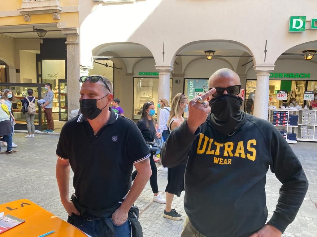 come lei saprà alcuni energumeni, appartenenti agli ultras del FC Lugano (qualificatisi come tali e “amici di Renzetti”), hanno disturbato e tentato di impedire la raccolta di firme da parte di alcune militanti dell’MPS sabato pomeriggio in via Pessina: bancarella autorizzata dal suo Municipio. Le hanno inoltre gravemente insultate e minacciate (“avreste già dovuto finire nel lago”. Tutte attestazioni che, se necessario, potranno essere dimostrate.