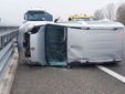 Per cause da accertare da parte della polizia stradale, un tamponamento tra un camion e una Fiat Doblò ha provocato il ribaltamento dell'auto.