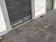 A testimoniarlo i segni ben evidenti al risveglio, sotto i portici che circondano il palazzo: macchie di sangue, bottiglie rotte, vetri e botti. Davanti alle vetrine abbandonate un cartello eloquente che invita le persone a “defecare” da un’altra parte: peccato che proprio sotto, su un foglio di giornale, vi sia un escremento in bella mostra.