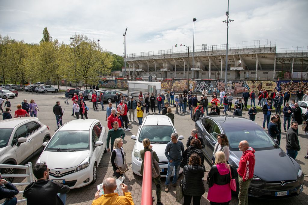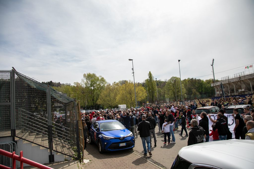 C’è Toto Bulgheroni, giubbotto di pelle e occhiali scuri. La folla si accorge di lui e partono cori e battiti di mani. Dietro quegli occhiali scuri, un mondo di sensazioni.