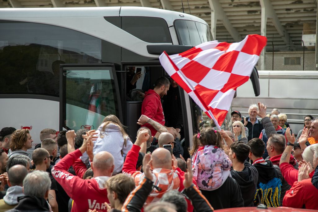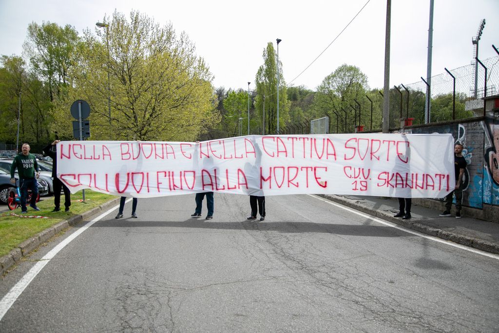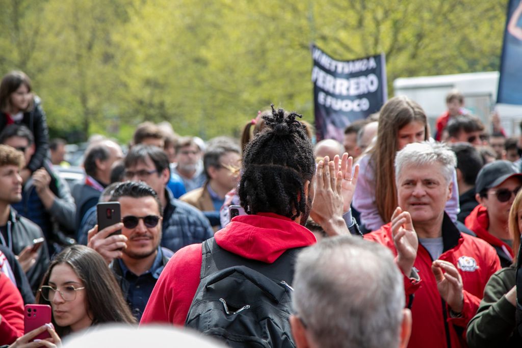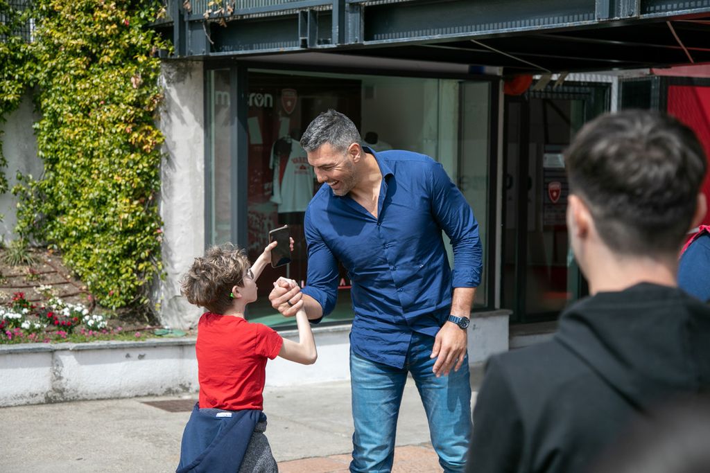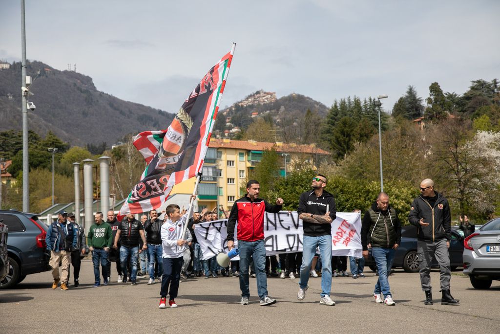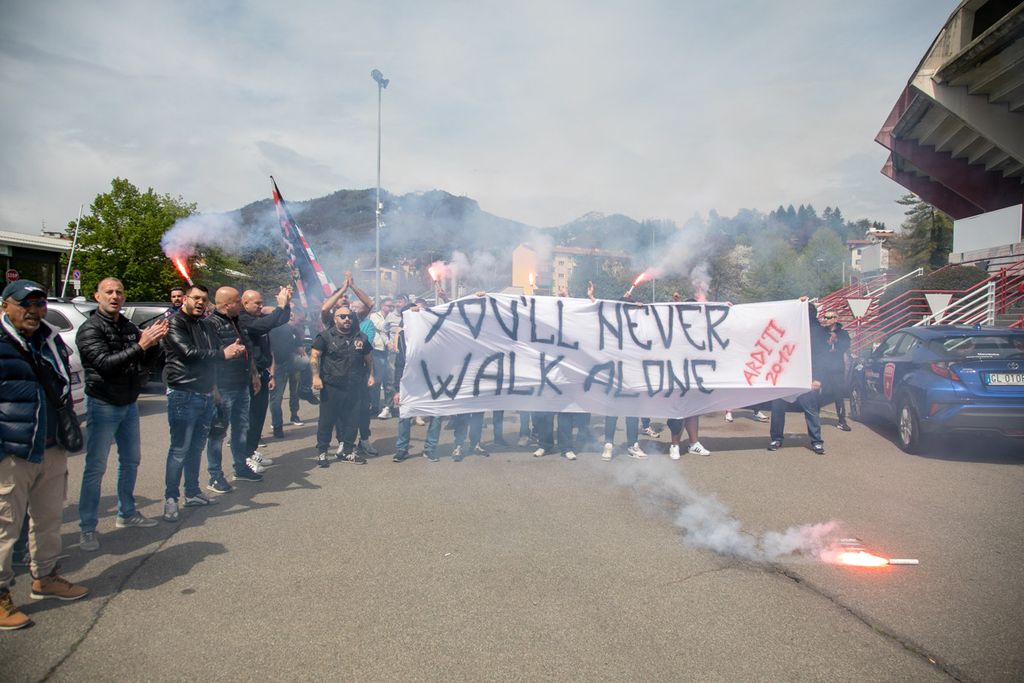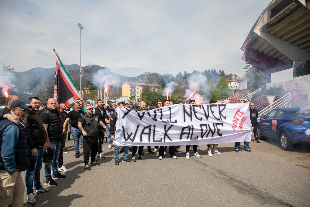 Le prime persone hanno iniziato ad arrivare verso le 12.30 e sono cresciute fino alle 14, quando alla spicciolata hanno cominciato a uscire i primi giocatori, poco dopo l'arrivo della Curva con lo striscione "You never walk alone". Cori, pacche sulle spalle e “cinque alti” per tutti.