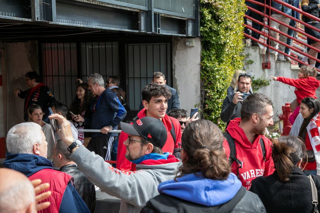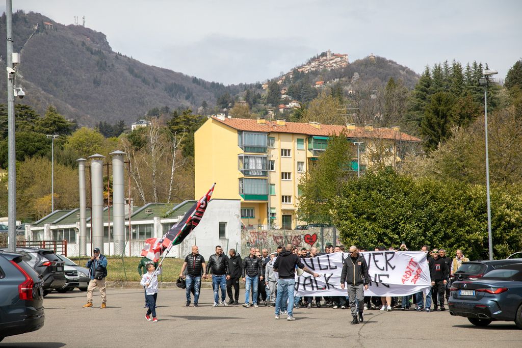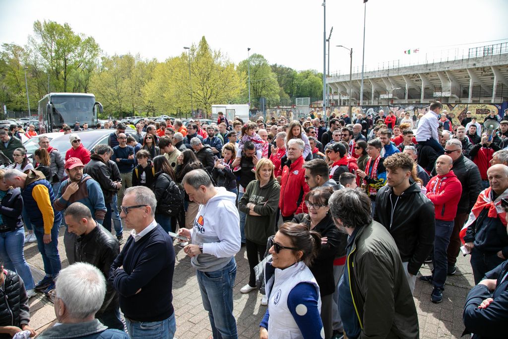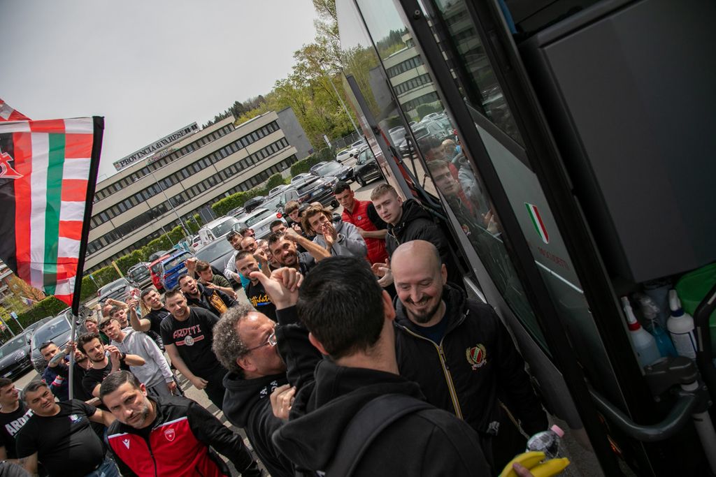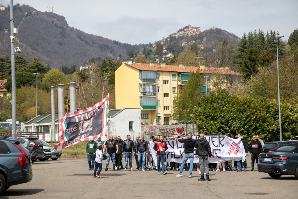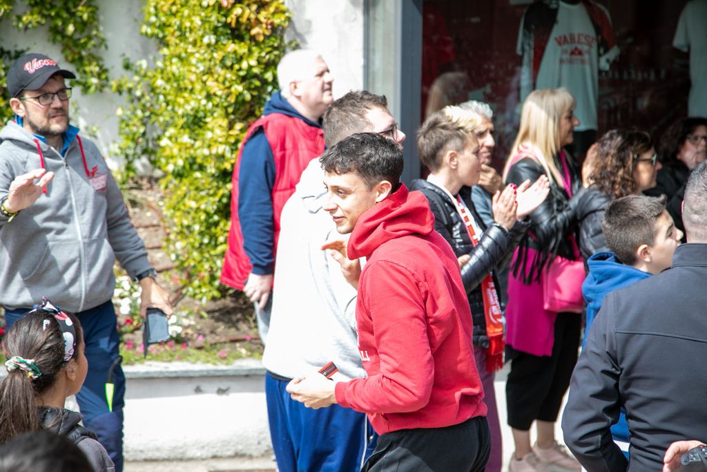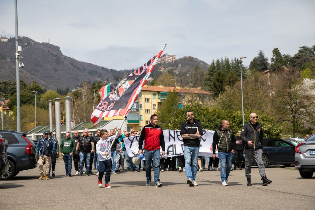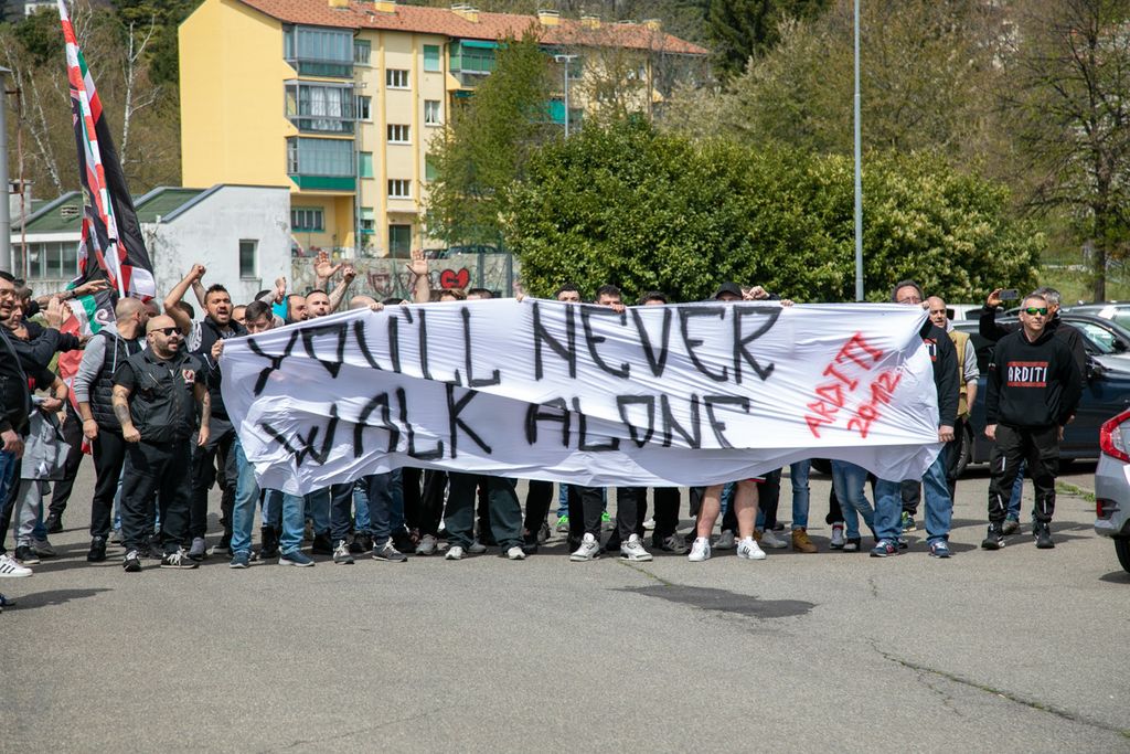 Le prime persone hanno iniziato ad arrivare verso le 12.30 e sono cresciute fino alle 14, quando alla spicciolata hanno cominciato a uscire i primi giocatori, poco dopo l'arrivo della Curva con lo striscione "You never walk alone". Cori, pacche sulle spalle e “cinque alti” per tutti.