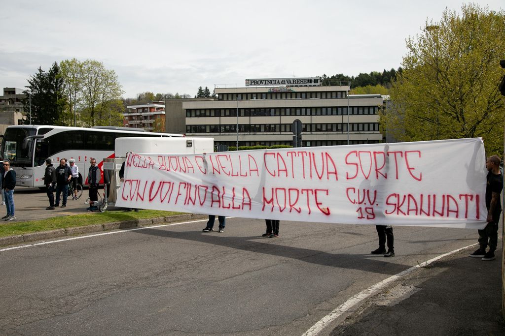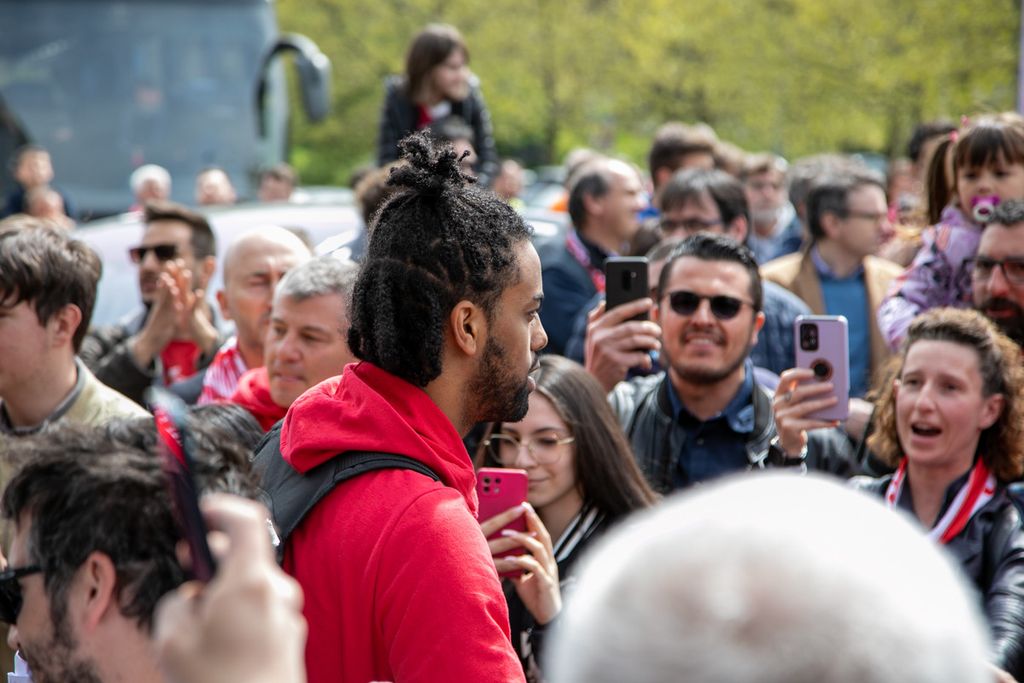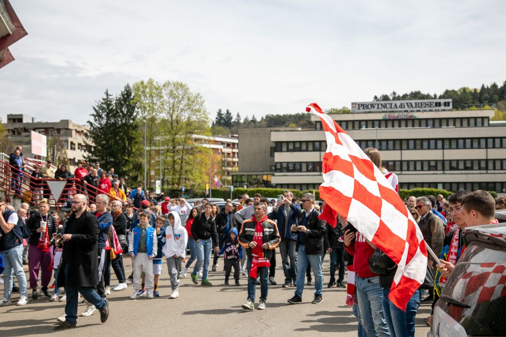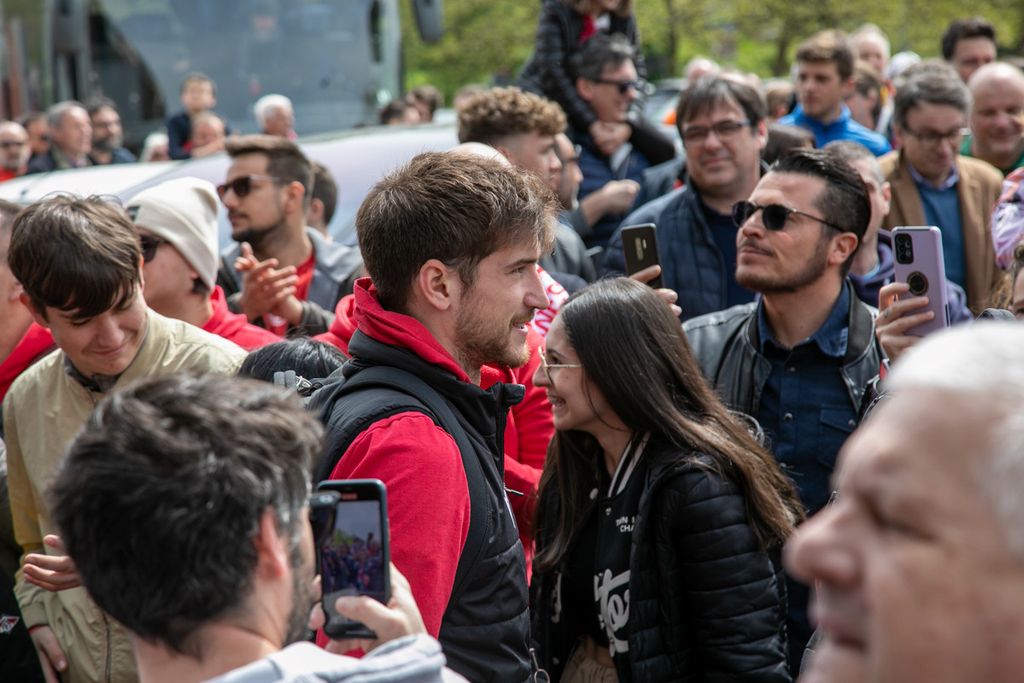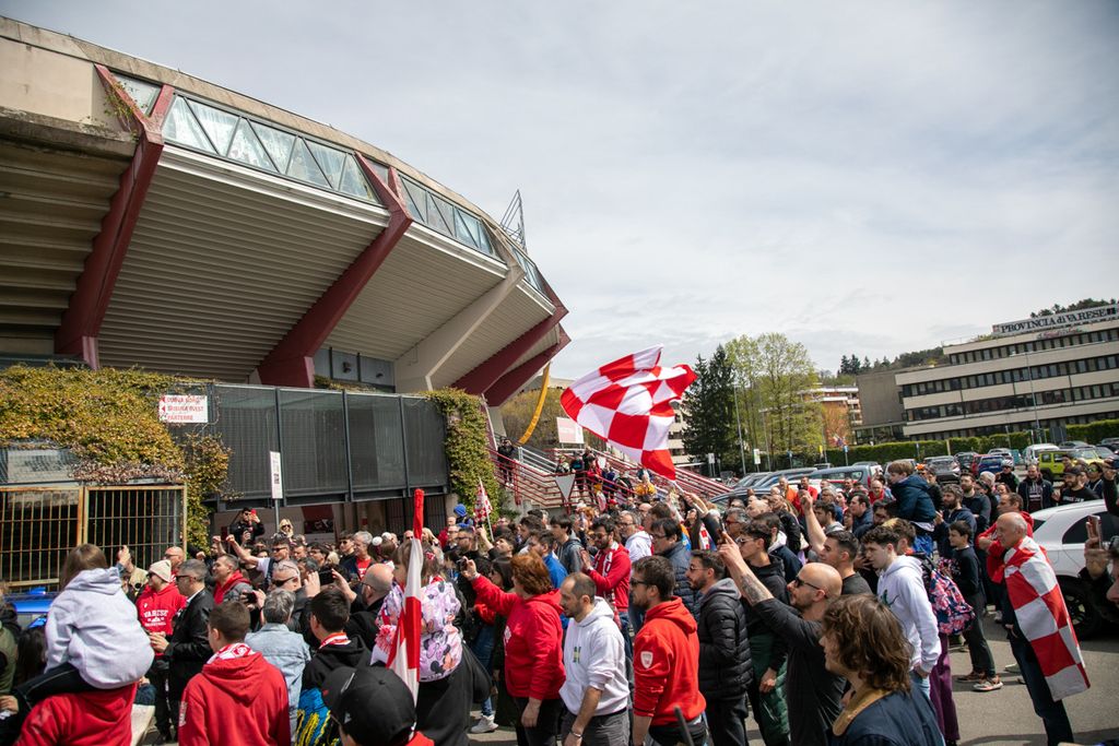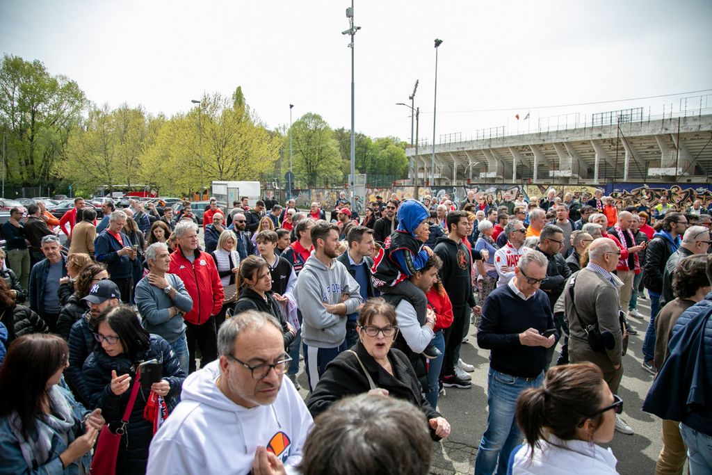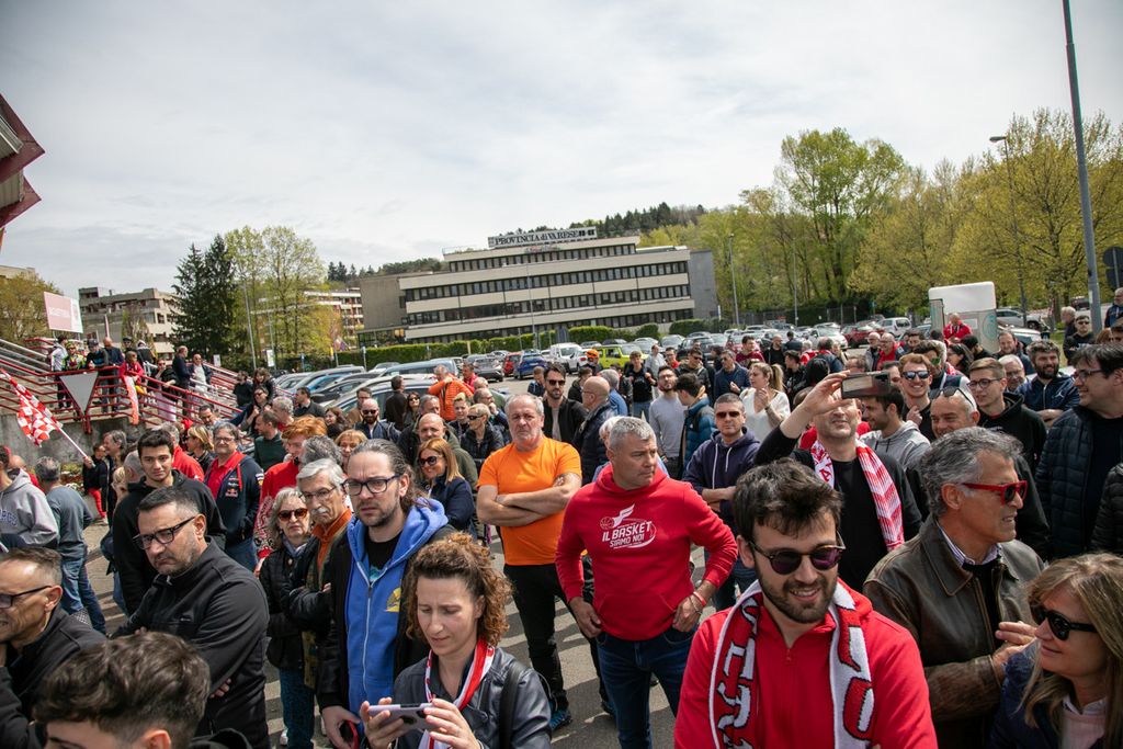 Le prime persone hanno iniziato ad arrivare verso le 12.30 e sono cresciute fino alle 14, quando alla spicciolata hanno cominciato a uscire i primi giocatori, poco dopo l'arrivo della Curva con lo striscione "You never walk alone". Cori, pacche sulle spalle e “cinque alti” per tutti.