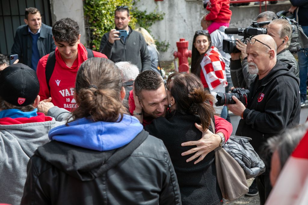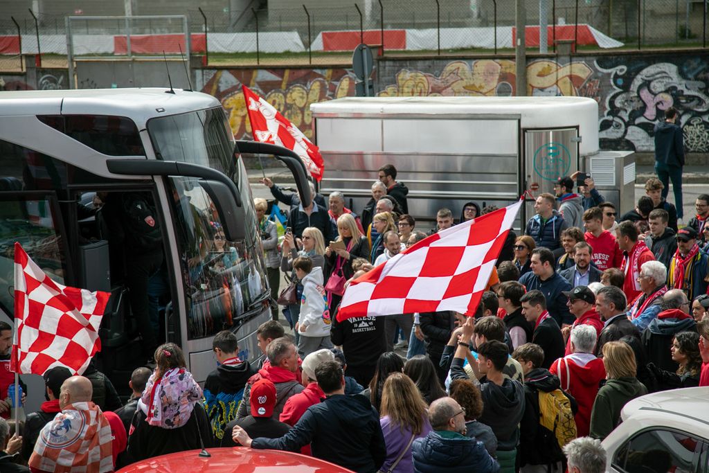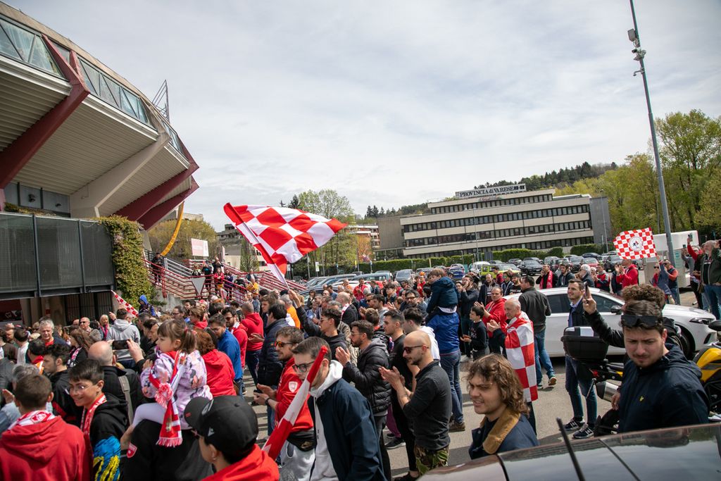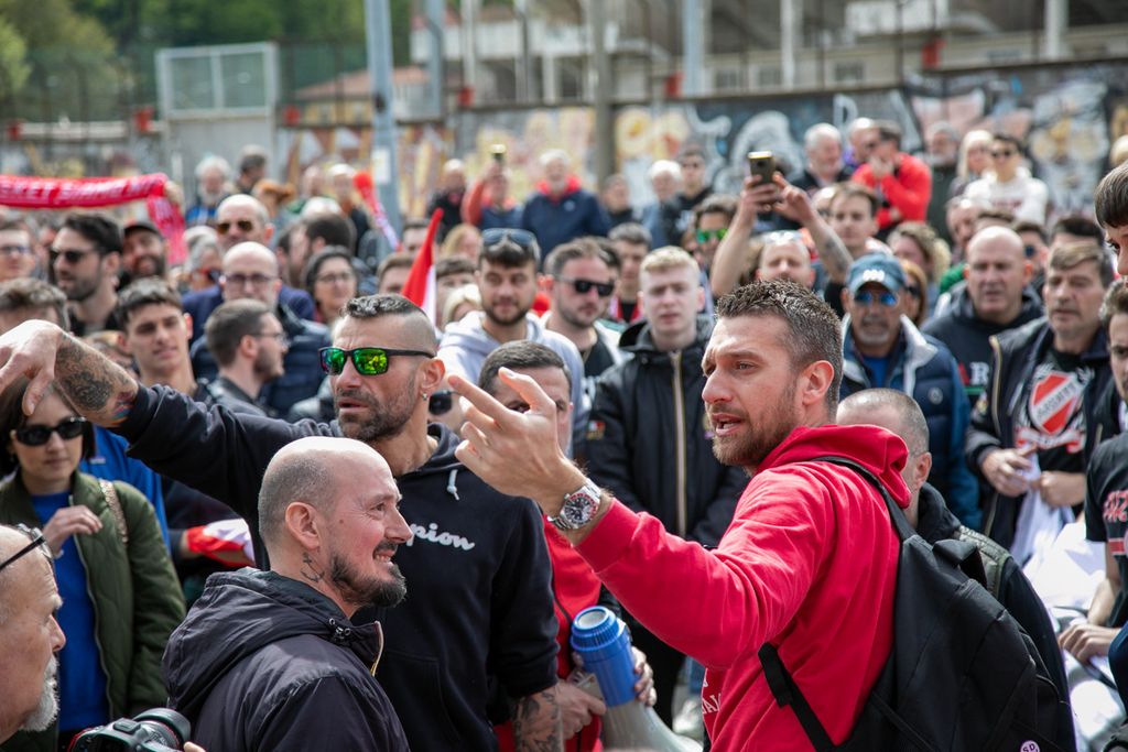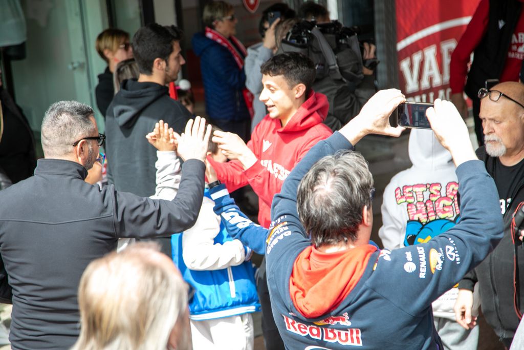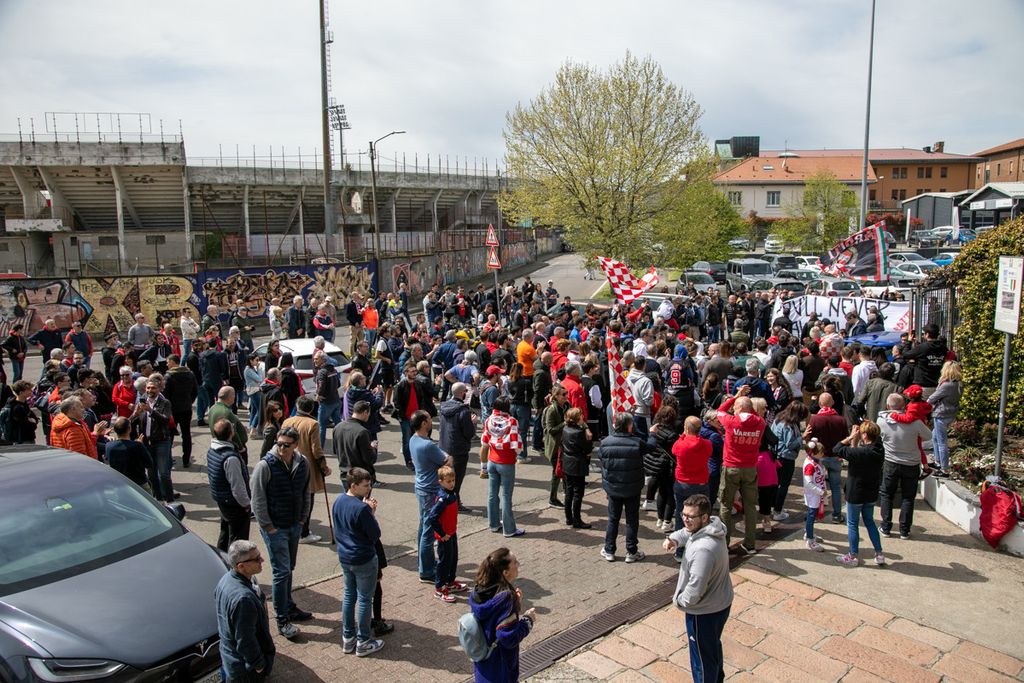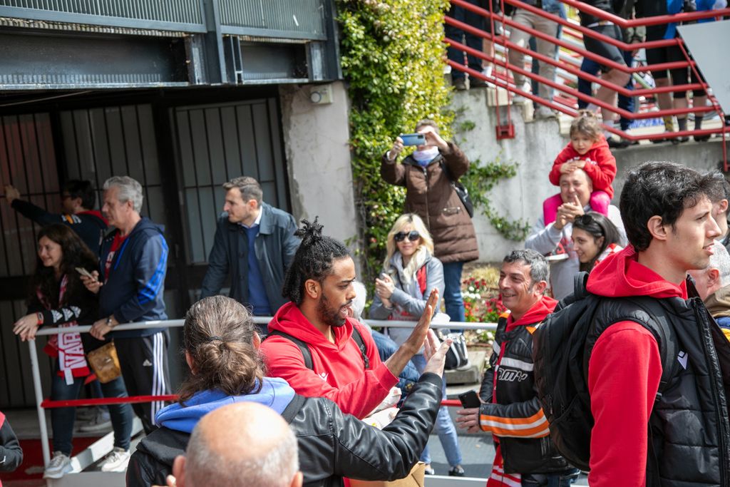 Le prime persone hanno iniziato ad arrivare verso le 12.30 e sono cresciute fino alle 14, quando alla spicciolata hanno cominciato a uscire i primi giocatori, poco dopo l'arrivo della Curva con lo striscione "You never walk alone". Cori, pacche sulle spalle e “cinque alti” per tutti.