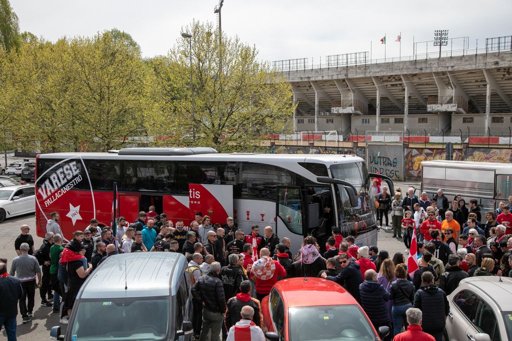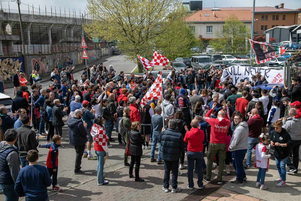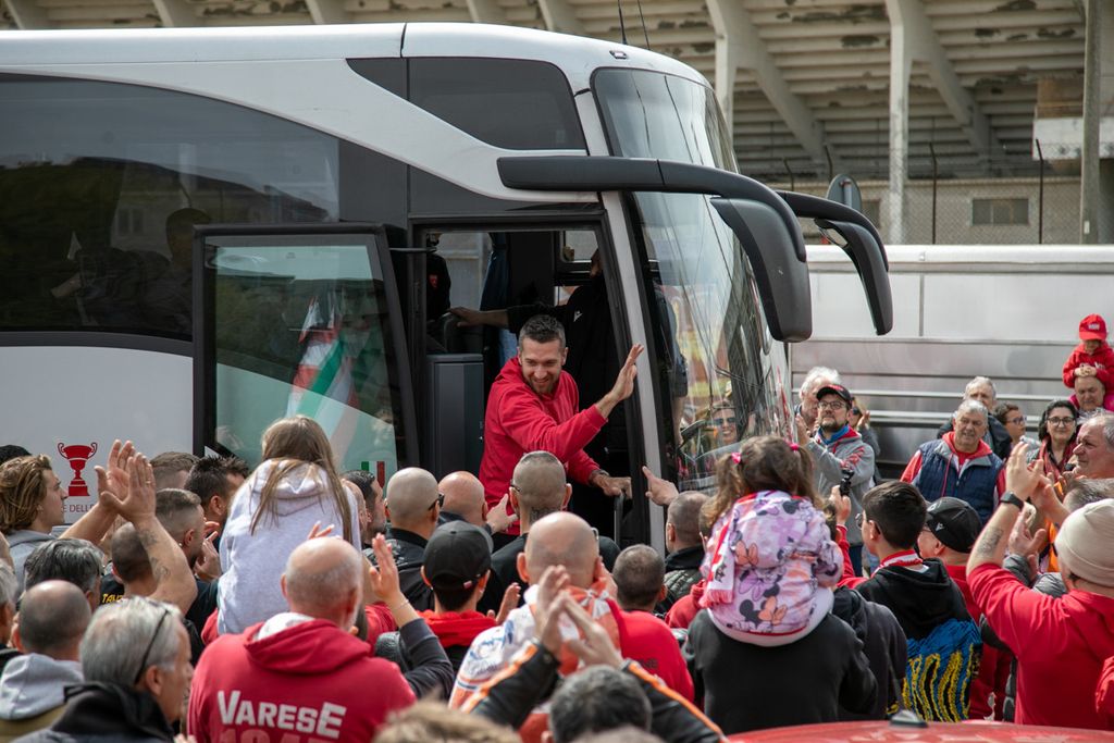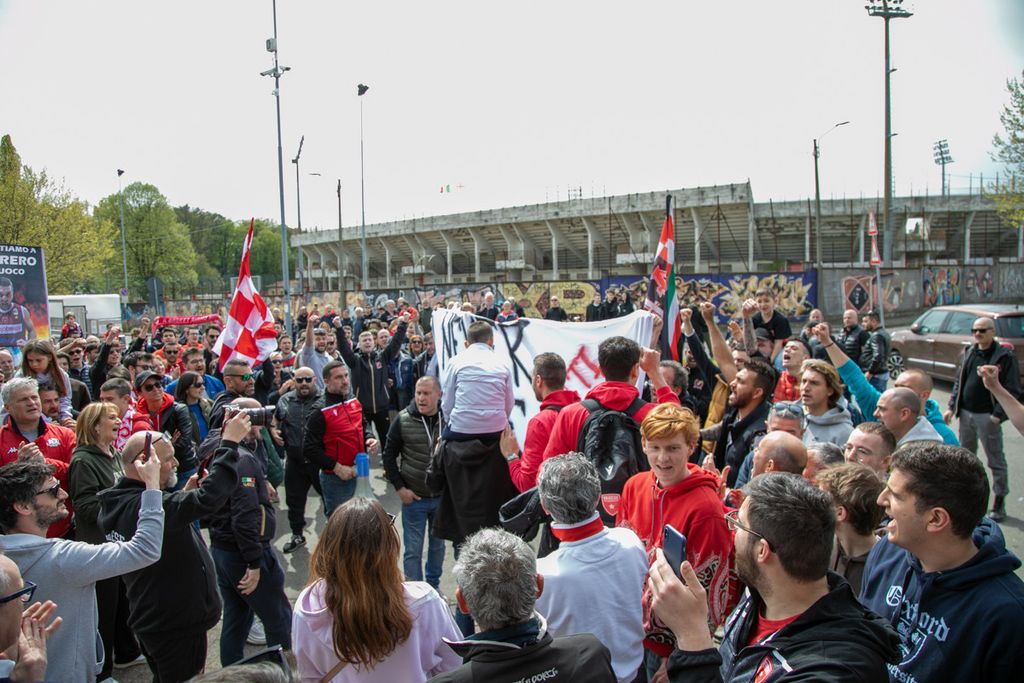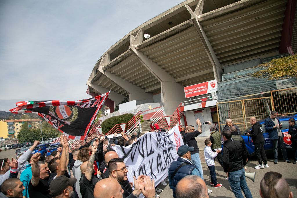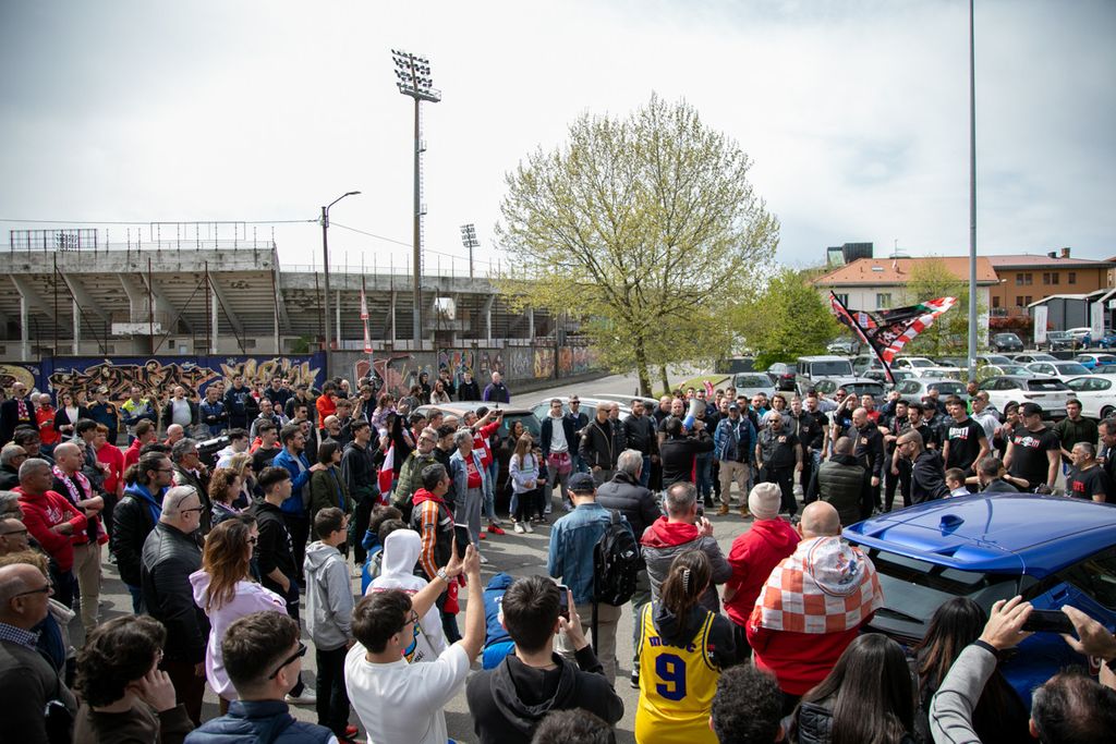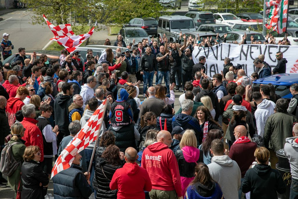 È quello che oggi hanno gridato trecento, quattrocento biancorosso-vestiti fuori dal Lino Oldrini alla partenza della squadra allenata da Matt Brase per Trieste, dove domani giocherà la sua prima gara da neonata concorrente alla salvezza, da ultima in classifica, numericamente devastata dalla penalizzazione di 16 punti.