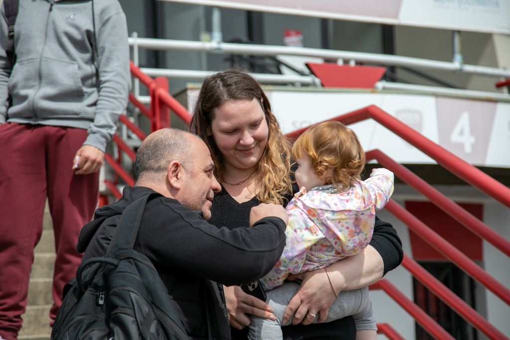 C’è Max Ferraiuolo, che abbraccia sua figlia Martina e sua nipote Mia. E si commuove.