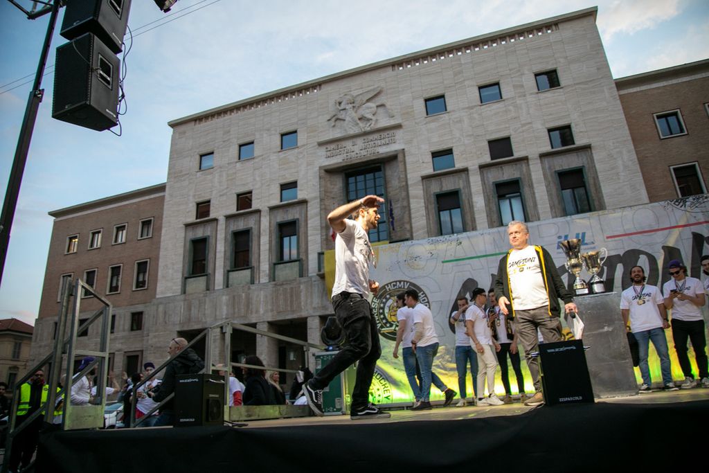 A dimostrarlo le centinaia di persone convenute in centro a Varese a partire dalle 18.30, tra musica, la brillante conduzione dal palco di Federico Pisanti e Roberto Rizza e gli interventi di protagonisti e istituzioni, dall’uomo della macchina del ghiaccio Luca, a Matteo Cesarini, dall’assessore allo Sport di Varese Stefano Malerba al ds che ha costruito la squadra del miracolo, Matteo Malfatti.