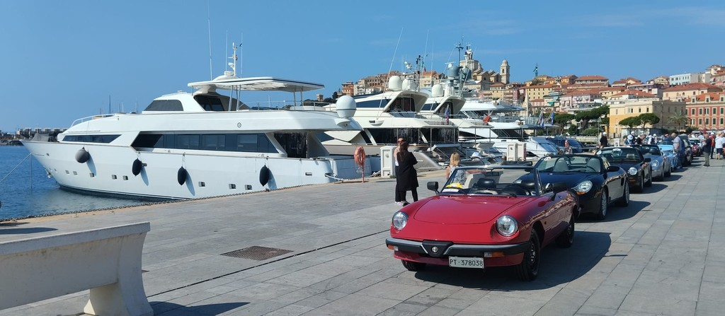 Poco dopo le 10 da calata Anselmi è partito il raid su un percorso di circa 70 chilometri nell'entroterra per ammirare la vista mare dal famoso Passo del Ginestro, importante strada sede delle prove speciali dei famosi rally, per poi scendere al Colle San Bartolomeo dove si possono ammirare bellissimi oliveti e vigneti di importanti aziende agricole.