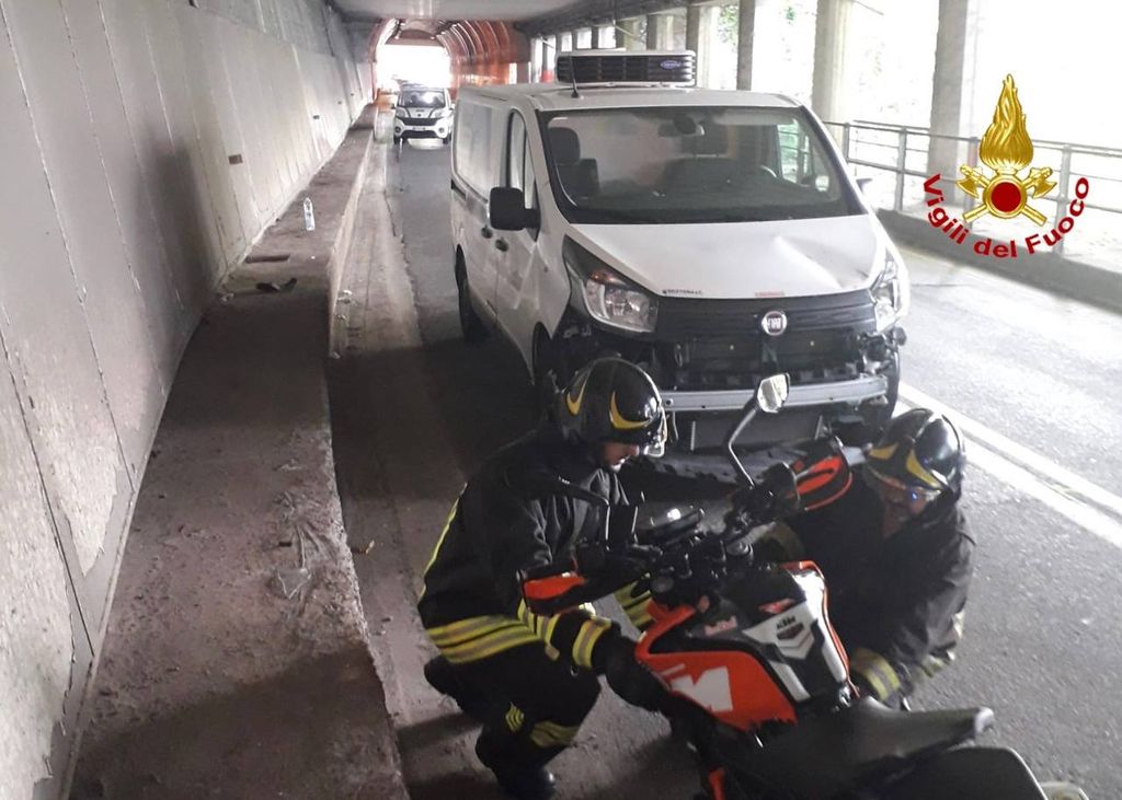 Una moto e un furgone si sono scontrati frontalmente nel pomeriggio di oggi, attorno alle 17.30, sulla strada provinciale 69 a Laveno Mombello sotto la galleria del Sasso Galletto.