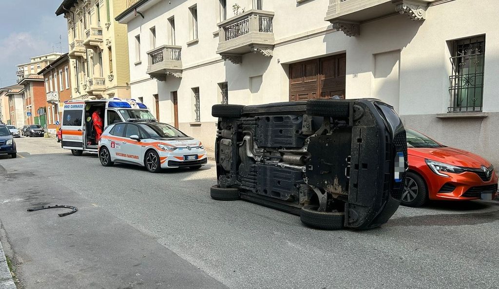 Si ribalta con l’auto in via Bellini, 28enne in ospedale a Busto
