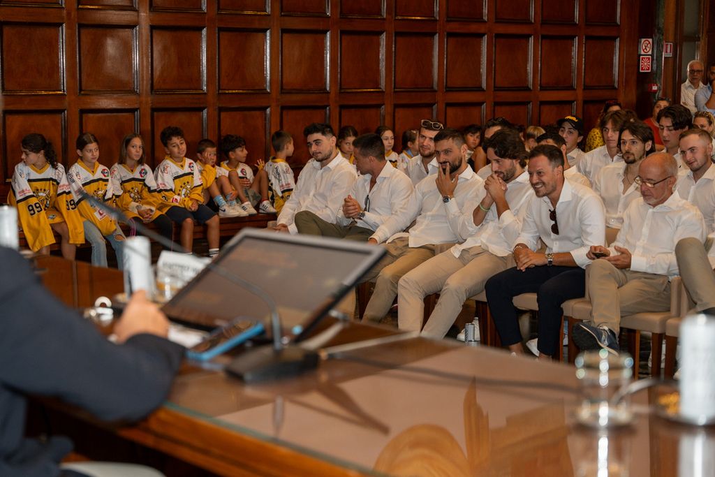 Carlo Bino, il presidente, è tornato sempre lì: all'emozione. «Viviamo di entusiasmo e dell'amore che ci trasmette Varese, portiamo 1.100 persone al palaghiaccio, abbiamo una grande squadre e, attorno a noi, grandi aziende tutte varesine fatte da grandi persone. Siamo una realtà bellissima, diversa da tutte le altre. Siamo, soprattutto, varesini e questa cosa fa la differenza».