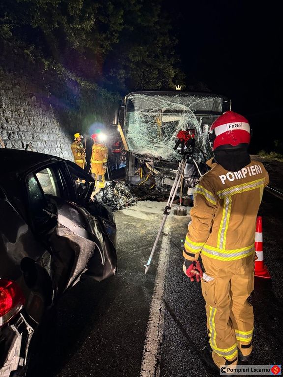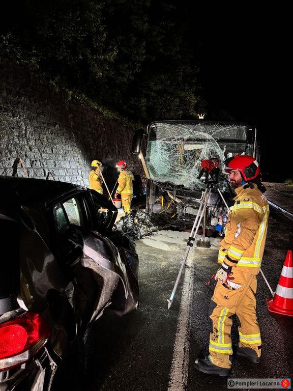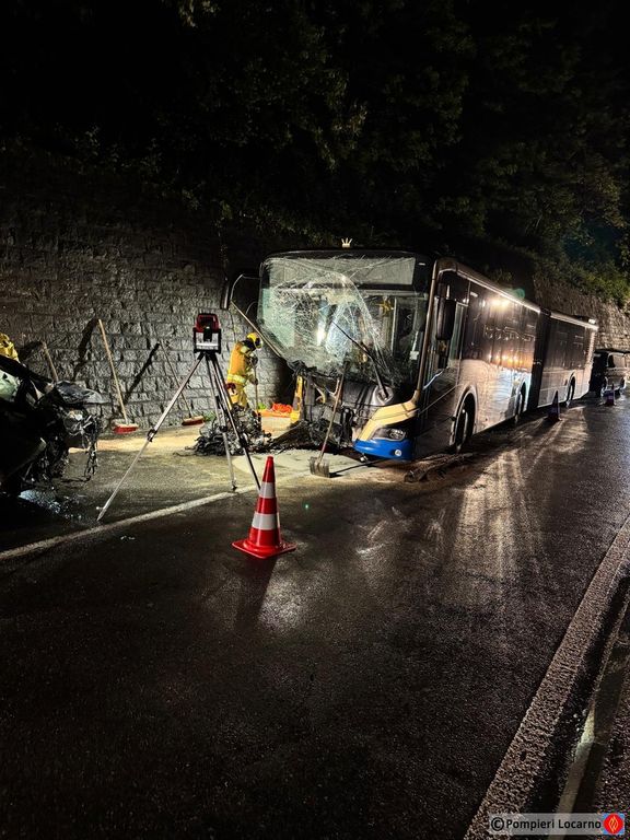 Secondo una prima ricostruzione, l’auto viaggiava in direzione della Vallemaggia quando, per cause ancora in fase di accertamento, ha invaso la corsia opposta andando a impattare contro il bus che procedeva nella direzione contraria. Nessuno dei passeggeri a bordo del mezzo pubblico ha riportato conseguenze.