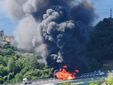 La nube di fumo nero è visibile da Savona.