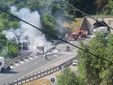 Sul posto stanno intervenendo i vigili del fuoco per un autoarticolato con semirimorchio telonato in fiamme.