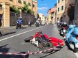 Il sinistro è avvenuto lungo la via Aurelia all'altezza di via Torino, non distante dall'incrocio con Salita del Grillo. Secondo le prime informazioni, il centauro (un uomo sulla cinqua tina, ndr) sarebbe stato disarcionato dal mezzo e sbalzato a diversi metri di distanza da questo. Ferita, sembrerebbe, anche una persona a bordo dell'auto.