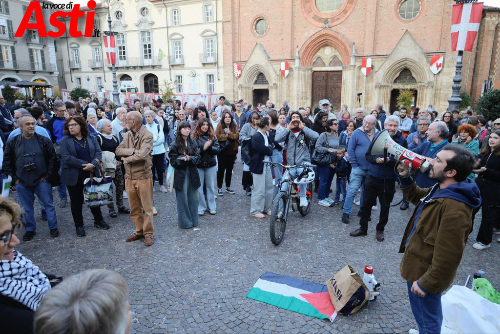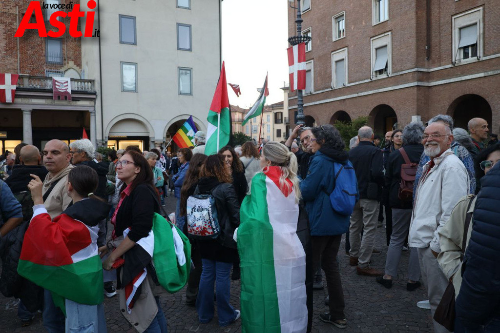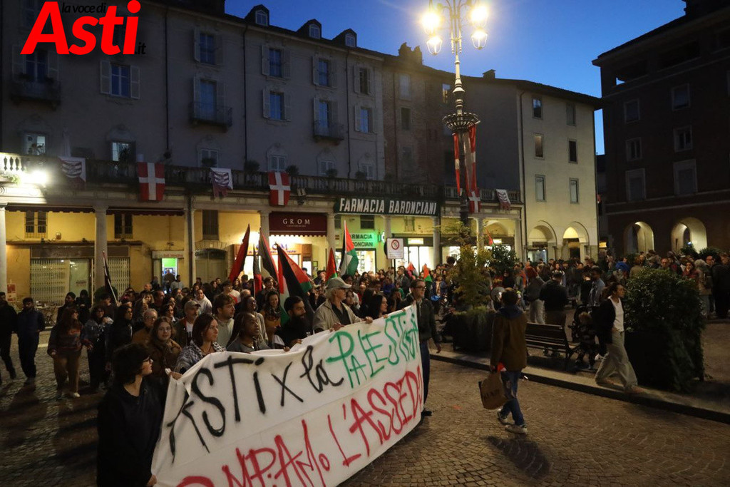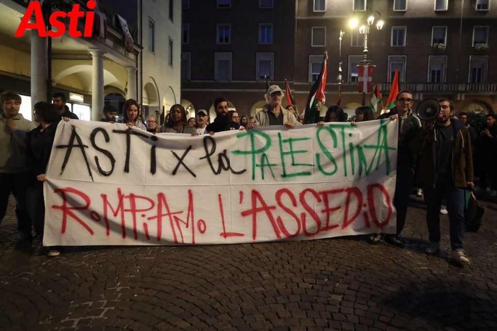 Piazza San Secondo gremita e strade del centro di Asti animate questa sera con un presidio di solidarietà al popolo palestinese, organizzato in concomitanza con il blocco della Flotilla che tentava di portare aiuti umanitari nella Striscia di Gaza. Il corteo, dopo gli interventi in piazza, si sta dirigendo verso l'ospedale cittadino per commemorare gli oltre 1700 medici e operatori sanitari uccisi a Gaza dall'inizio del conflitto.