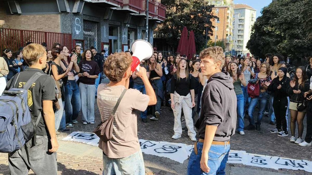 Il concentramento è alle 11 davanti a Palazzo Nuovo, da dove è partito il nuovo corteo: l'obiettivo è raggiungere tutti gli altri atenei di Torino. Una parte dei manifestanti si muove in bicicletta, mentre la restante parte a piedi. Oltre agli universitari sono presenti anche gli studenti delle scuole occupate, a partire dal liceo Einstein. I ragazzi e le ragazze dal megafono hanno urlato:"Angurie si, Meloni no"