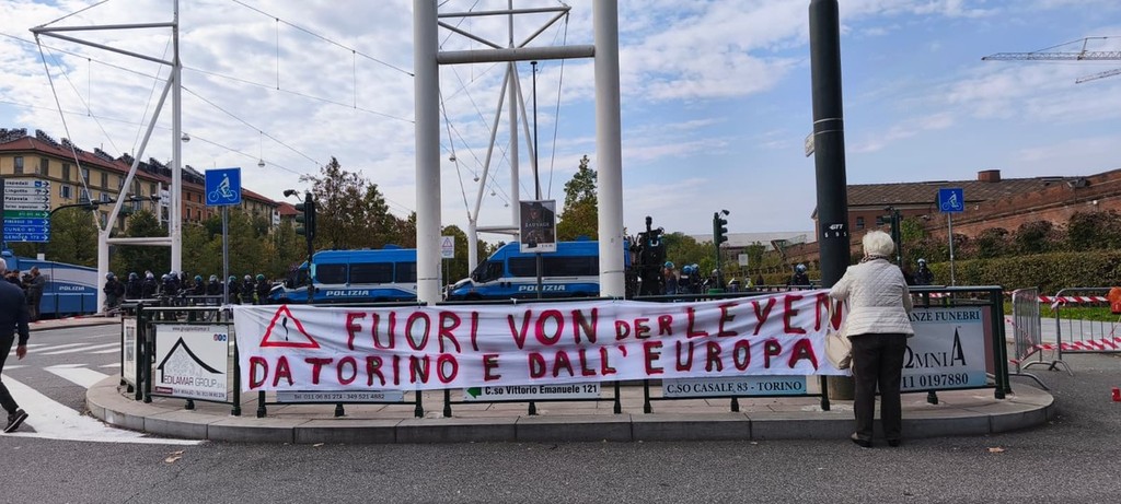 Ore 11. 10 Dopo circa mezz'ora di contrapposizione tra manifestanti e forze dell'ordine pronte a bloccare eventuali forzature, il corteo ha fatto dietrofront e ha iniziato a marciare in corso Vittorio Emanuele, direzione ovest. L’intenzione è quella di unirsi al corteo dei sindacati partito poco fa da piazza Palazzo di CIttà. Intanto tutte le personalità attese alla convention, Bezos, Elkann e von der Leyen, sono regolarmente arrivate alle Ogr. La Von der Leyen ha poi lasciato regolarmente le OGR.
