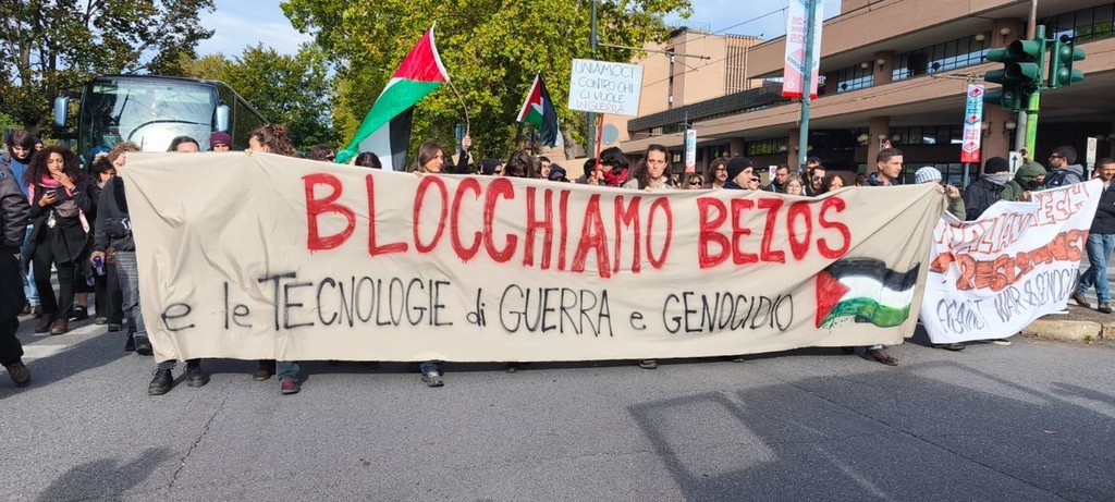 Il fondatore e ceo di Amazon è accusato di fornire supporto tecnologico all'esercito israeliano e in questo modo di essere direttamente coinvolto nell'occupazione della striscia di Gaza e nell'uccisione dei palestinesi. Per lo stesso motivo, la sede Amazon di Brandizzo, questa mattina è stata occupata dai lavoratori in sciopero.