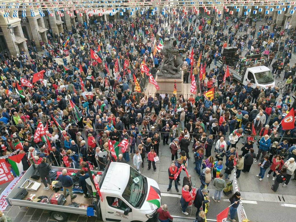 Torino è pronta allo sciopero generale. Alle 10 partirà da piazza Palazzo di Città il lungo corteo -promosso da CGIL, Cub e Usb- dopo il blocco della Sumud Flottilla da parte di Israele. E la manifestazione si annuncia molto partecipata: a partire dalle 9 sono già migliaia le persone che si sono ritrovate davanti al Comune.