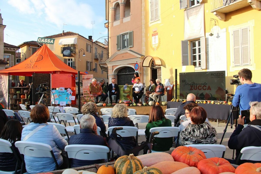 Come ogni anno non potranno mancare le delizie alla zucca, – spiega l’organizzazione – bomboloni, muffin, cioccolatini artigianali Guido Gobino canditi con la zucca e il prelibato risotto, tutto a base del pregiato ortaggio piozzese. I piatti, dolci e salati, potranno poi essere cucinati, a casa, da ogni visitatore grazie alle ricette illustrate nel ricettario dedicato alla zucca di Piozzo".
