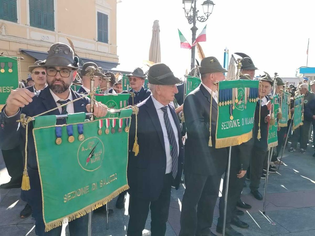 Questa mattina dopo l'ammassamento e la registrazione dei Vessilli, Gagliardetti e delle Associazioni d'Arma nel Parco di Villa Croce è partita la sfilata da via dei Leudo, che ha attraversaro le vie cittadine fino a Piazza Bovani, dove si è tenuta la consegna del Premio Nazionale Alpino dell'Anno alla presenza della Fanfara Alpina Monte Beigua della Sezione di Savona e di tutte le istituzioni civili e militari.