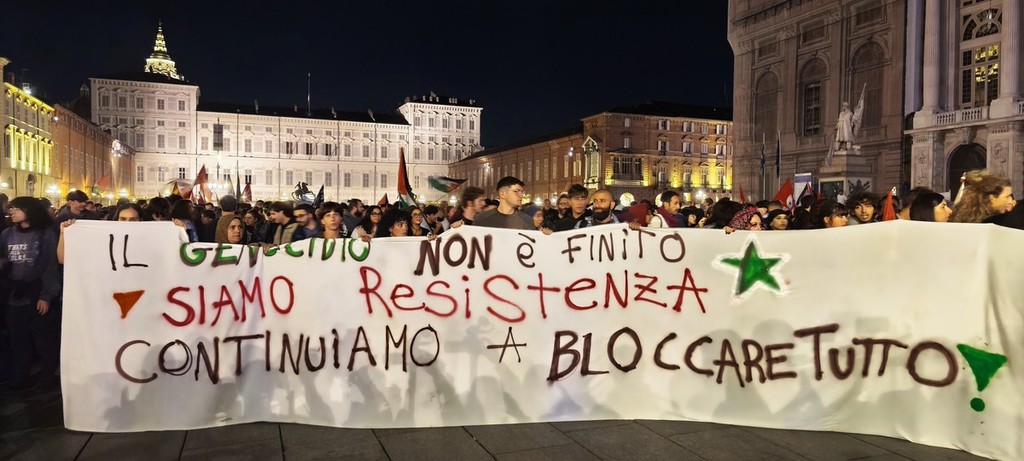 Due anni fa, l'attacco terroristico di Hamas dentro i confini di Israele che ha causato 1200 morti e centinaia di feriti e ostaggi. Due anni dopo, migliaia di persone stanno manifestando in piazza Castello contro la reazione di Israele, che nei 24 mesi successivi ha ucciso 66 mila gazawi compresi bambini, medici, operatori umanitari e giornalisti.