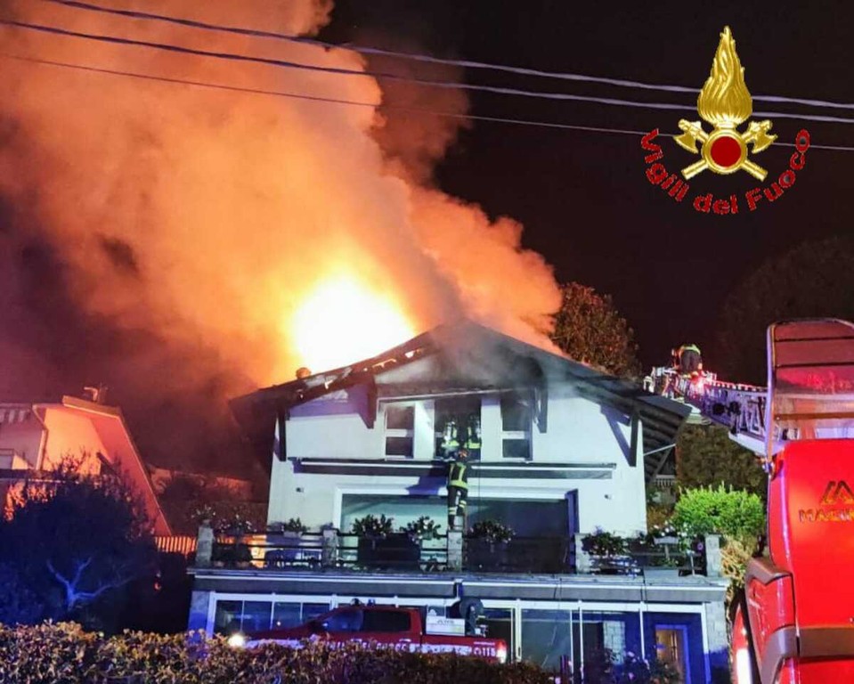 Una notte di fuoco. E' quella appena trascorsa a Ranco a causa di un grosso incendio che ha interessato un'abitazione. L'allarme è scattato alle 21.20 di ieri, in via Ciani.