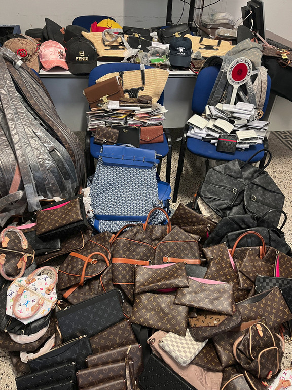 L’intervento è scattato dopo giorni di osservazione: gli agenti avevano notato un cittadino senegalese, già noto per precedenti in materia di commercio abusivo, accedere ripetutamente all’immobile in concomitanza con i mercati della Riviera di Ponente. Dopo averlo seguito, lo hanno colto in flagranza mentre usciva con un sacco pieno di materiale falso.