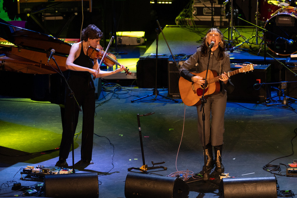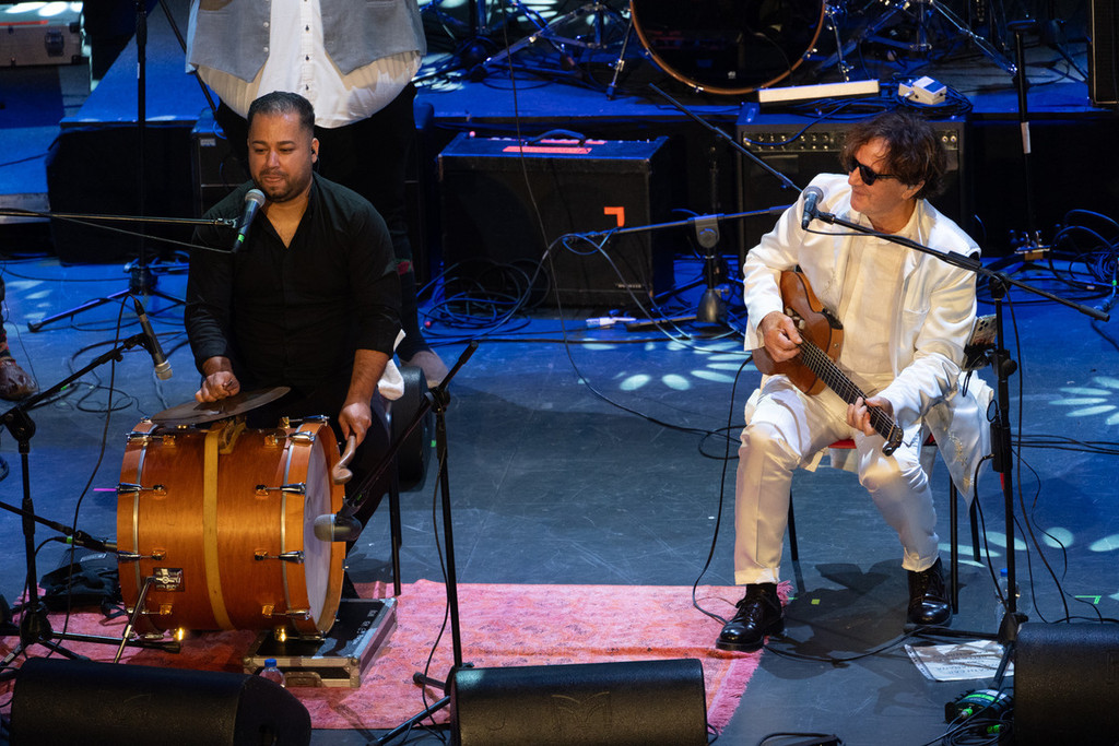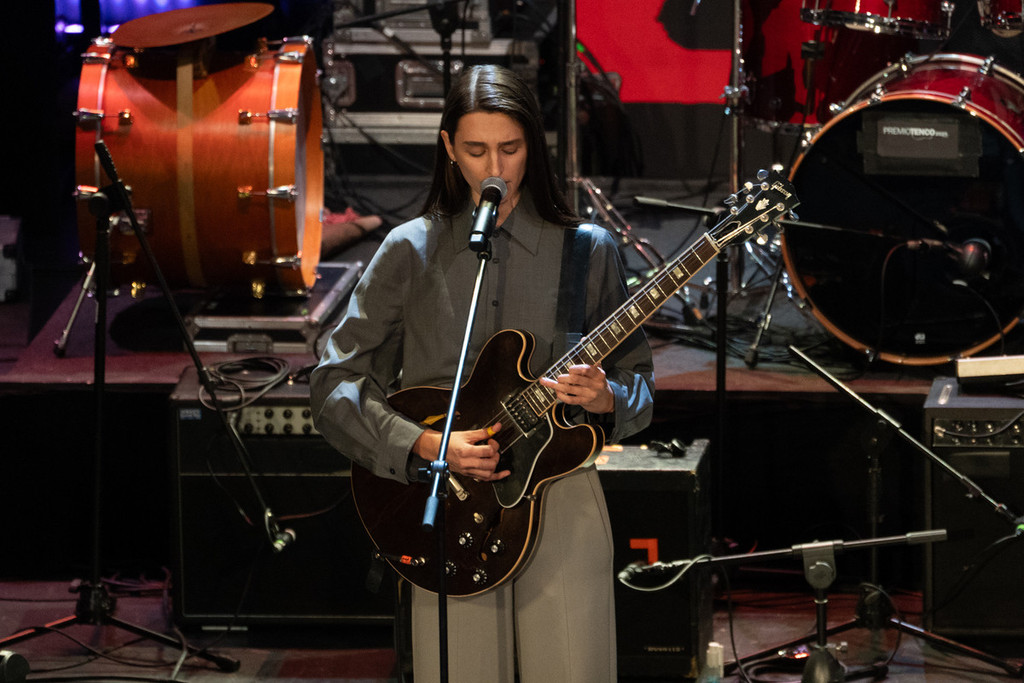 Subito dopo, spazio alla poesia cruda di Lamante, tre brani intensi (Ciao cari, La magia più forte della morte, Come volevi essere), chiusi da un duetto con Emma Nolde su Dopo di te. E poi Ginevra Di Marco, premiata con la Targa Tenco come miglior interprete per Kaleidoscope, capace di incantare il pubblico con una performance ricca di emozione e mestiere: Canzone arrabbiata, Il coraggio di essere fragili, Rosa canta e cunta, Balla per Margherita.