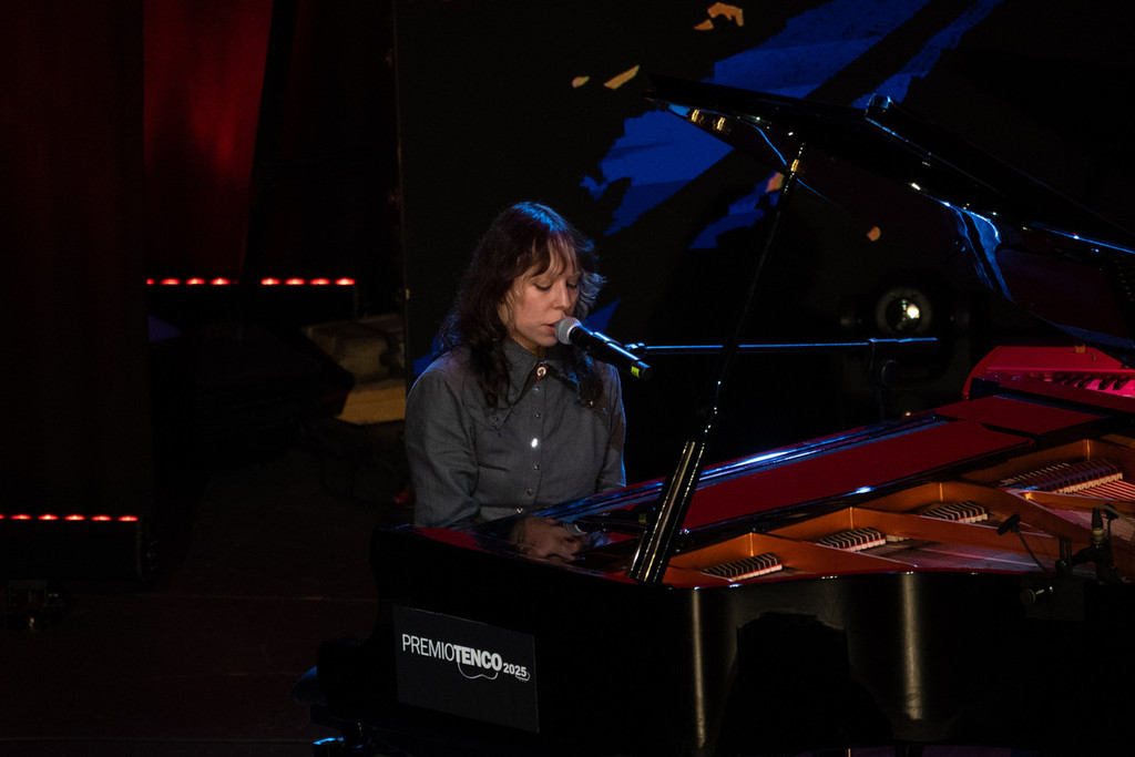 Ma la serata, presentata con classe e ritmo da Lorenzo Luporini (nipote di Giorgio Gaber) e Antonio Silva, è stata anche un viaggio corale nella canzone d’autore femminile. Emma Nolde ha aperto la rassegna sulle note di Lontano lontano, la sigla storica del Tenco, per poi proseguire con Sirene e Punto di vista: voce potente, presenza magnetica, la giovane cantautrice ha dato il via al festival con la giusta vibrazione.