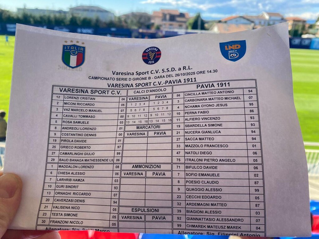 Varesina (3-4-3): Lorenzi, Pirola, Grieco, Cavalli; Miconi, Andreoli, Rosa, Vaz; Camarlinghi, Costantino, Baud Banaga. A disposizione: Maddalon, Chiesa, Larhrib, Guri, Ornaghi, Caverzasi, Valisena, Testa. All: Spilli