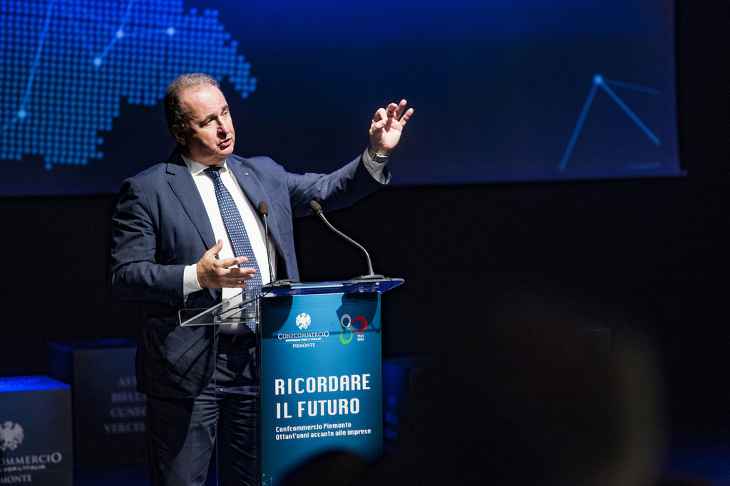 “Se sei venuto a parlarmi del problema, senza una soluzione, allora sei parte del problema”. Il presidente della Regione Piemonte Alberto Cirio cita una scritta che compare nella carrozzeria Bonfiglio di Alba, durante la celebrazione dell’80° compleanno di Confcommercio Piemonte.
