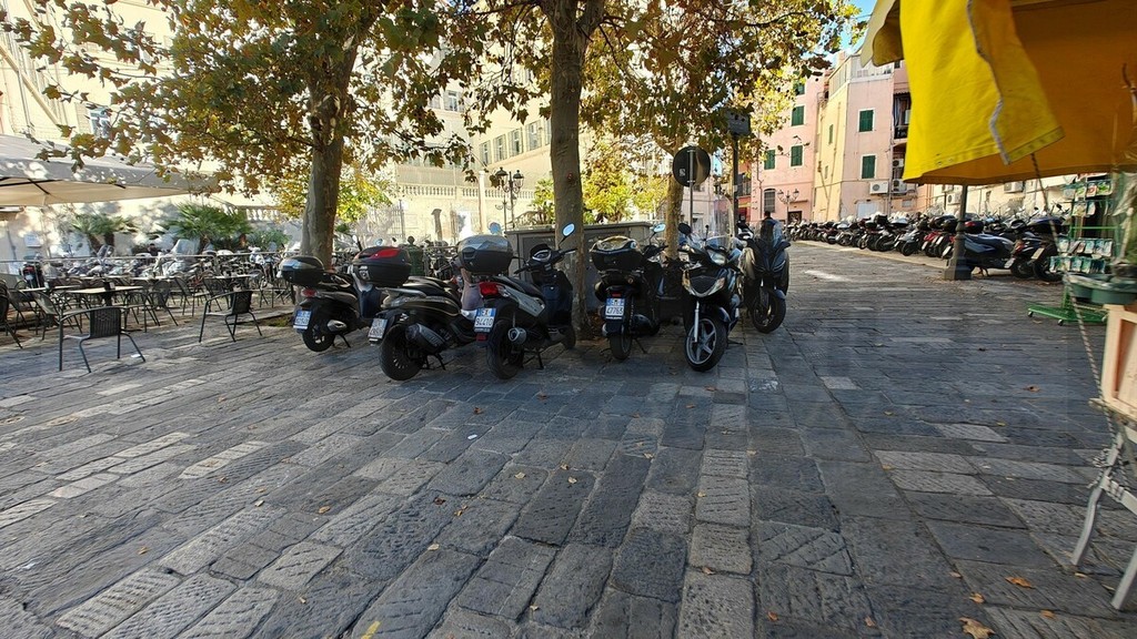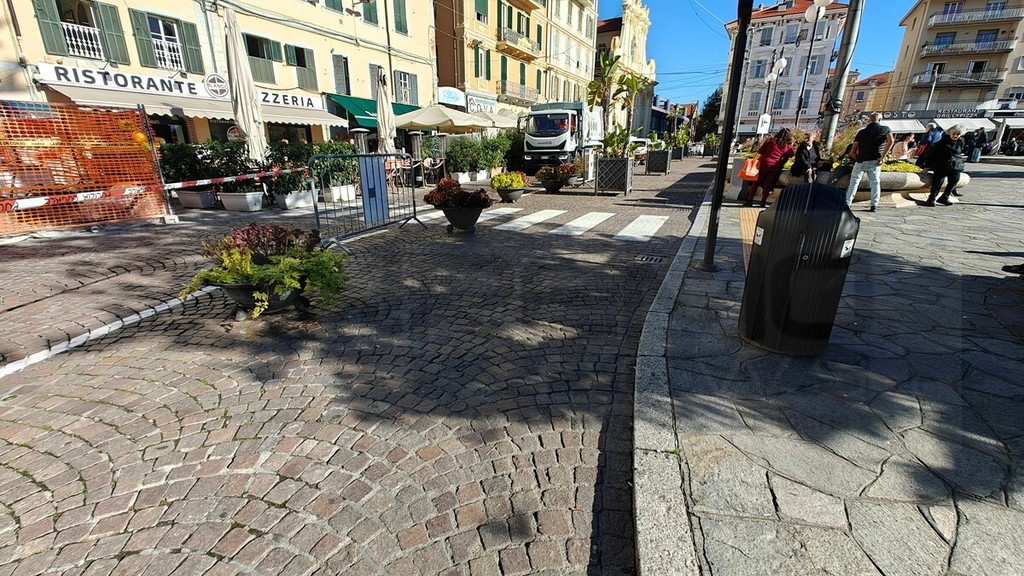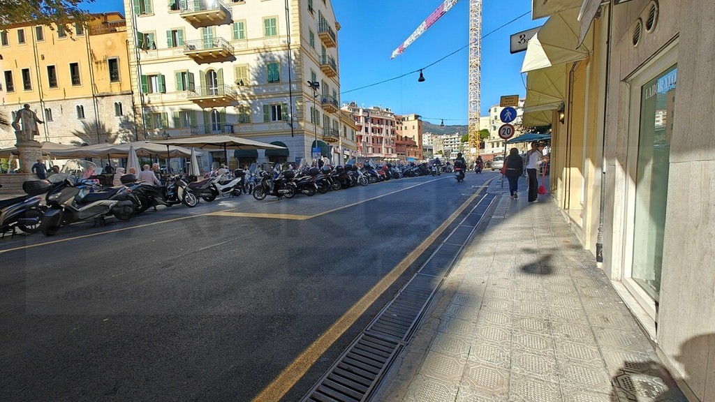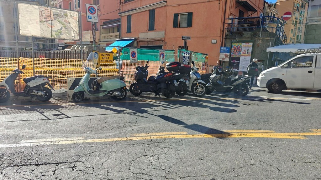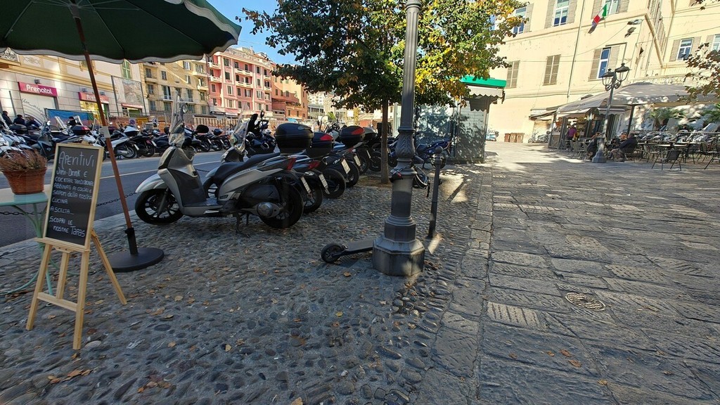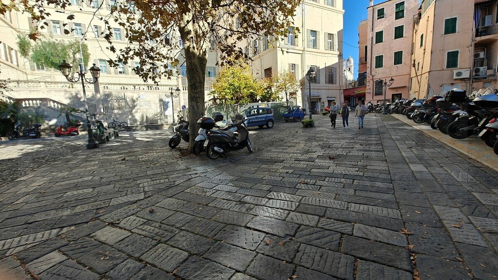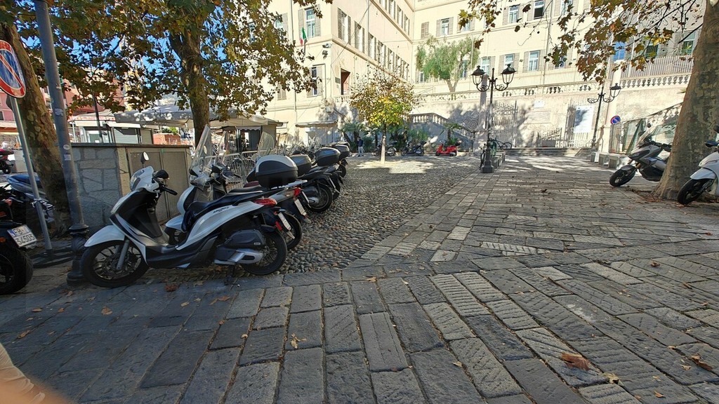 Discorso a parte (lo abbiamo volutamente lasciato per ultimo) merita piazza Eroi Sanremesi e le zone limitrofe. Da mesi – e ancora per un po’ – è presente il cantiere del costruendo parcheggio ma, di fatto, la zona un tempo destinata agli scooter, quando non c’era il mercato, sarà sostituita dalla nuova area pubblica con dehors, quindi non più utilizzabile. Con la scuola vicina, ora i ragazzi trovano qualche spazio nell’area predisposta dal Comune in piazza Muccioli. Ma, come si vede dalle foto, la piazza è totalmente invasa da moto e scooter, oltre che (quando il carico e scarico lo necessita) dai mezzi di Amaie Energia per il vicino punto di consegna della differenziata. L’area di fronte alla piazza, da molti denominata Siro Carli, è di vera anarchia, dove gli scooter hanno invaso la carreggiata e dove trovano posto anche alcune auto. Le zone attigue al cantiere sono diventate parcheggi di fatto per moto, che arrivano a occupare anche il camminamento pedonale. Il marciapiede vicino alla torre Saracena è un nuovo parcheggio selvaggio, così come l’inizio di via Martiri e la strada che porta alla città vecchia.