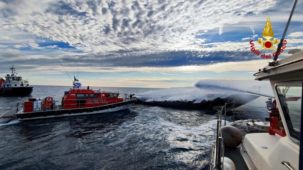 Nello specchio acqueo dove si è verificato l'incendio sono intervenute la motobarca dei vigili del fuoco di Savona, l’unità Gadda del Servizio Nautico del Comando di Genova e l’elicottero Drago 162 dei Vigili del Fuoco, oltre ai mezzi della Guardia Costiera e al rimorchiatore.