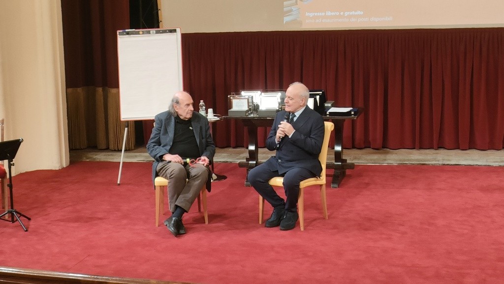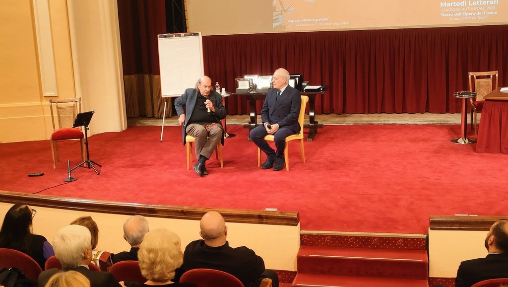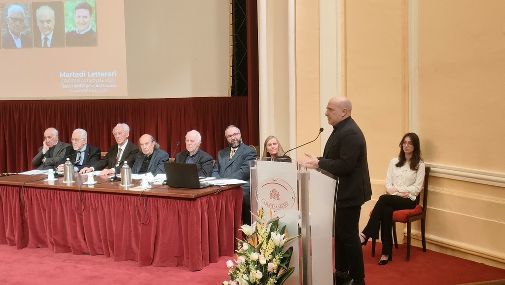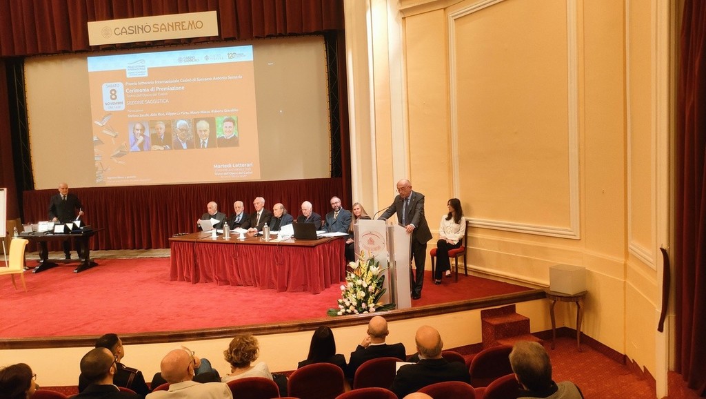 Presente anche il senatore Gianni Berrino: "Questi saggi saranno un importante lascito per il futuro, che mostreranno tra molti anni come era il mondo nel 2025 e quale visione avevamo del mondo nel 2025. Visto che siamo a Sanremo, credo anche sia giusto fare un saluto a Beppe Vessicchio, venuto a mancare poco fa".