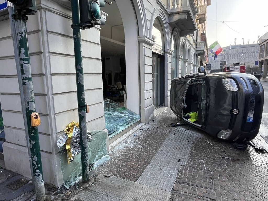 Schianto in via Veneto a Varese nella mattinata di oggi, domenica 9 novembre: coinvolte un'auto e una "pantera" della Polizia Stradale. L'allarme è scattato pochi minuti prima delle 8 all'altezza dell'incrocio con via Avegno, in pieno centro, proprio di fronte alla Coin. Qui un'auto della Polstrada e una Fiat Panda si sono scontrate: nell'impatto l'utilitaria si è ribaltata sul fianco, finendo sul marciapiede e andando a sfondare la vetrina di un negozio.