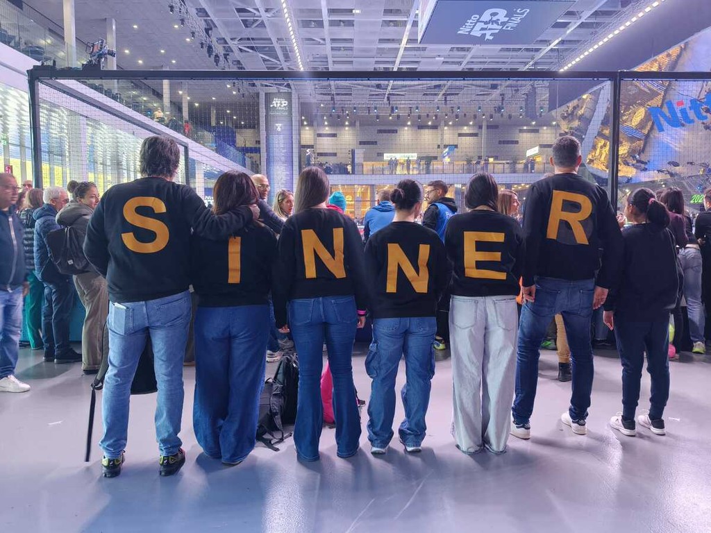 Tra la folla assiepata a vedere lo spagnolo, sono decine i capelli arancioni. Ma c'è chi si è spinto ancora oltre per dimostrare la sua passione per Sinner. È il caso di una famiglia di Montebelluna, in provincia di Treviso, che ha deciso di sfoggiare un maglione nero con scritto davanti a grandi lettere Jannik e dietro Sinner. Una lettera per componente del nucleo familiare, più gli amici.