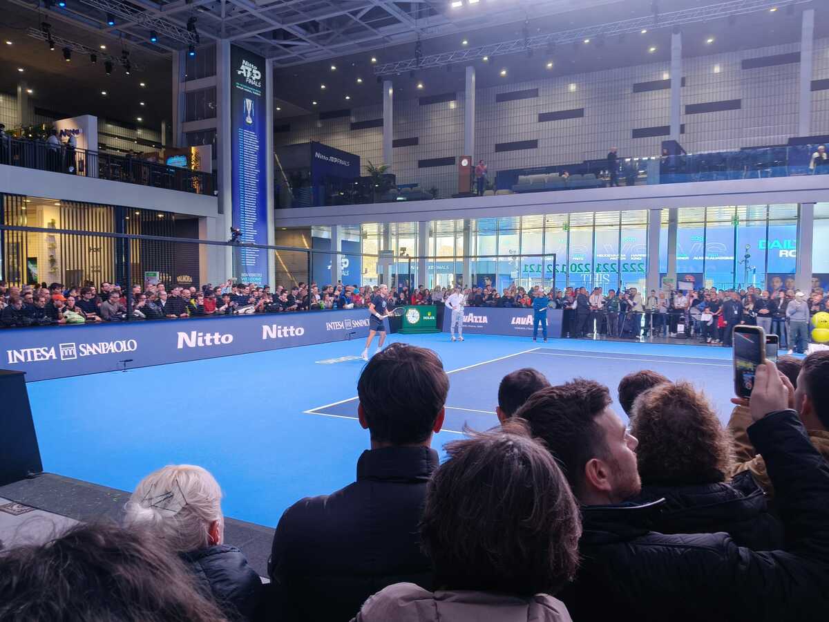 Oggi alle Nitto Atp Finals è il giorno dell'Italia: alle 14 scenderà in campo Lorenzo Musetti, mentre alle 20.30 Jannik Sinner. E gli spettatori azzurri che sono venuti a tifare il carrarino hanno avuto una bella sorpresa: sul campo all'ingresso dell'Inalpi Arena, a partire da mezzogiorno, ha iniziato ad allenarsi il numero 1 al mondo Carlos Alcaraz, reduce dalla vittoria contro Alex De Minaur.