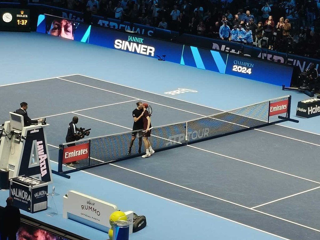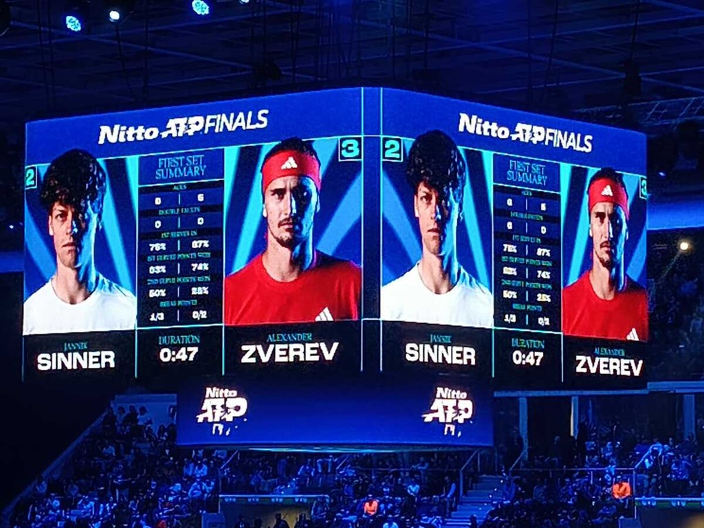 Durante la partita Zverev ha avuto diversi segni di insofferenza: dopo aver perso due punti si è rivolto verso la tribuna del suo allenatore allargando le braccia. Dopo aver perso il vantaggio sul quarto game del secondo set si è messo anche la racchetta in faccia, per la rabbia dell'occasione mancata. Il tedesco continua a lamentarsi e va a parlarne anche con il giudice arbitro, dopo il cambio di campo. Questa situazione manda un pò in confusione Zverev, che commette un paio di errori, portando Sinner a palla break, poi a capitalizzarla ci pensa il campione azzurro con una meravigliosa palla corta. Sinner risale da 0-30 nel game successivo, annulla l'ennesima palla break e poi va a chiudere 6-3 in scioltezza, scatenando l'ennesima festa dell'Inalpi Arena.