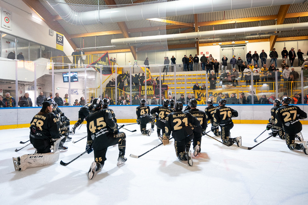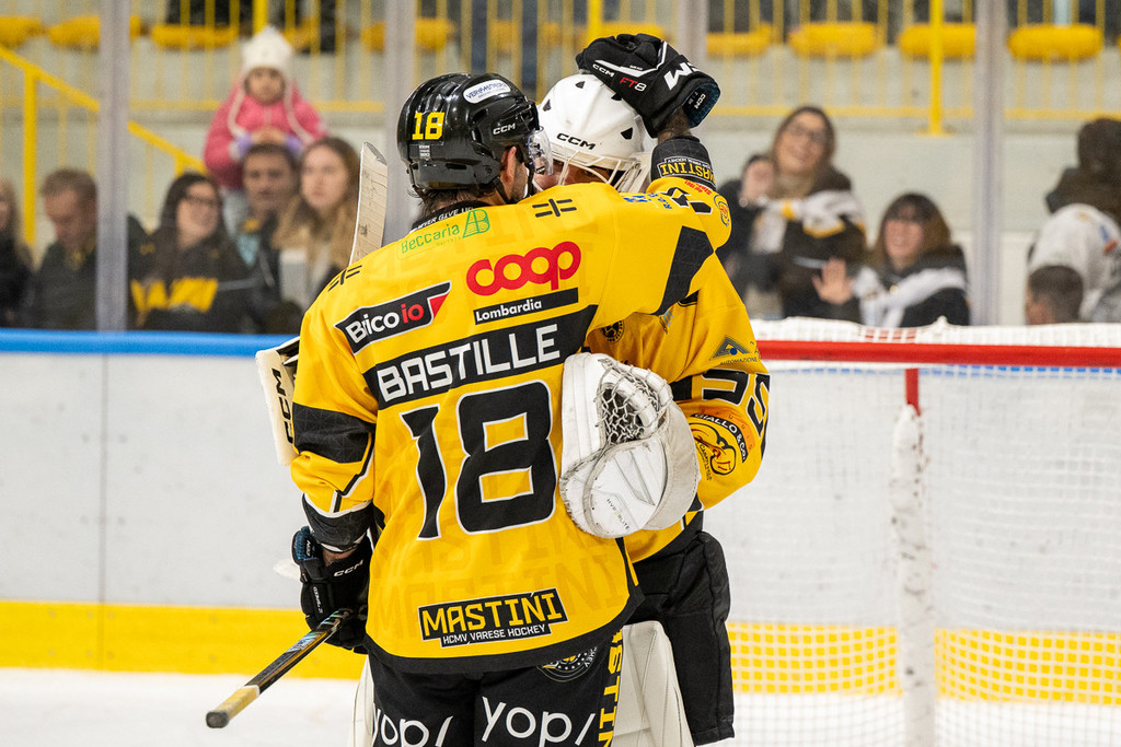 Poi Rocco Perla - senza di lui l'Aosta avrebbe preso forse più di tre gol - che abbraccia Pippo ("Filippooo Matonti, ale' ale'" il coro della curva che parla tutto), Pippo che corre, che balla, che viene portato in trionfo dal pubblico ("Pip-po-Pip-po") perché questo portierino diciottenne arriva da lontano, da un anno fa perché lui, a quell'età lì con un grande fratello che lo guida, non ha mai smesso di credere nel Varese e in Varese - che ora lo considera come un figlio, e che ha dato loro la felicità anche fuori dal ghiaccio - anche quando qualcuno nella scorsa stagione ha provato a ferirli o a farli sentire inadatti. Mai una parola fuori, mai un atteggiamento sbagliato. Figli di Varese, davvero e per sempre.