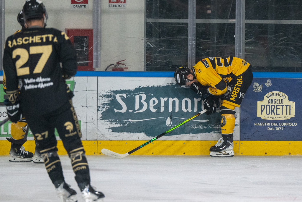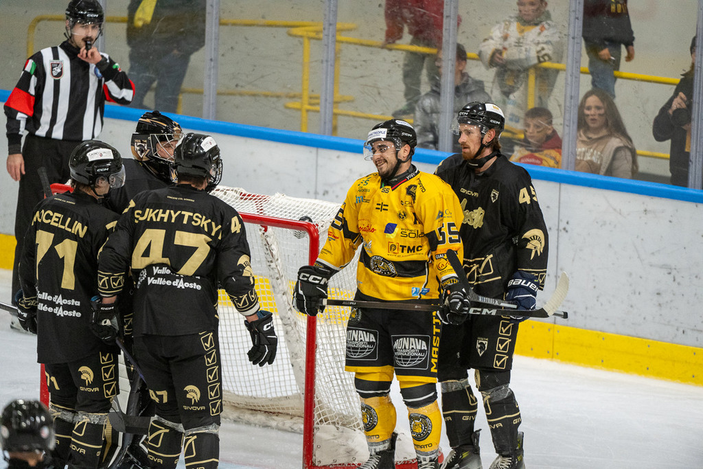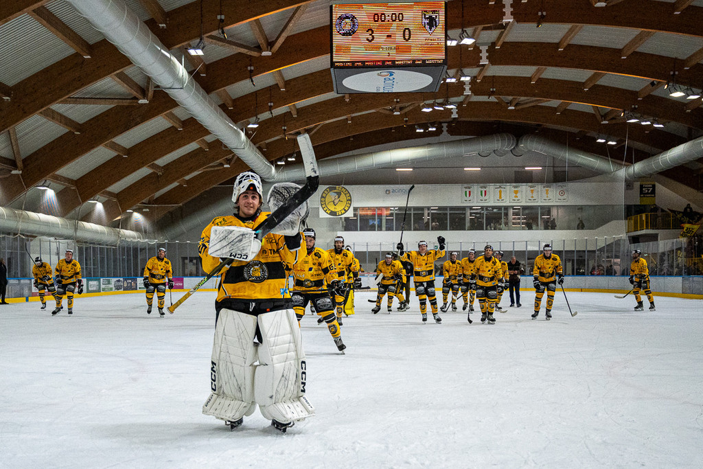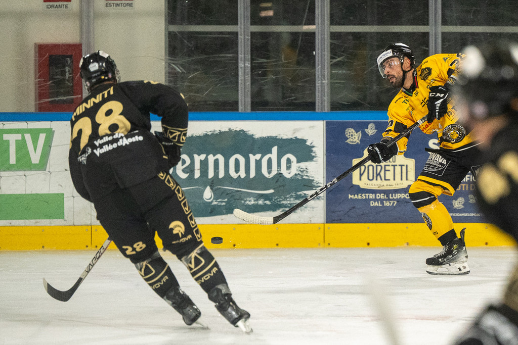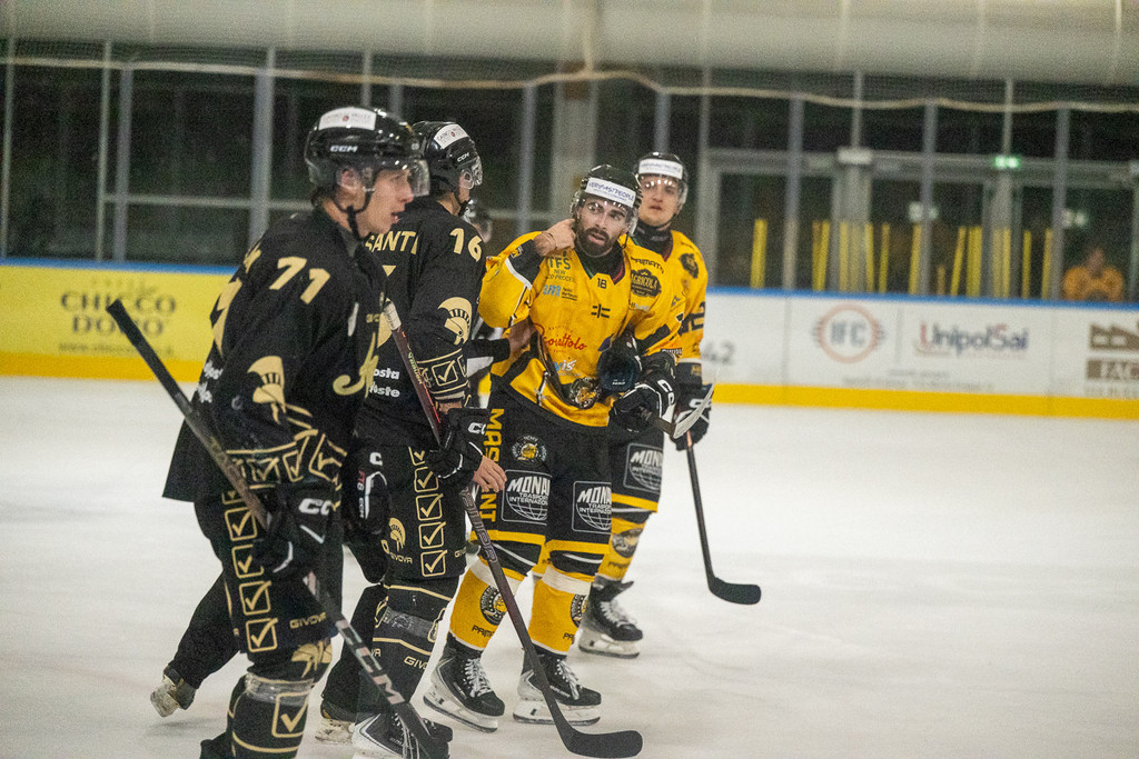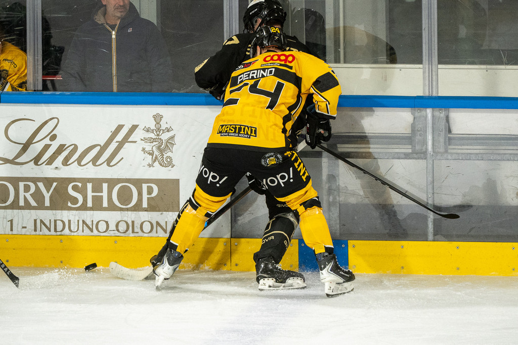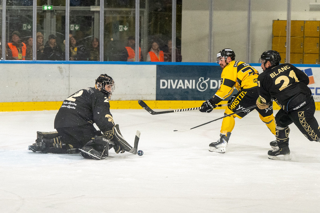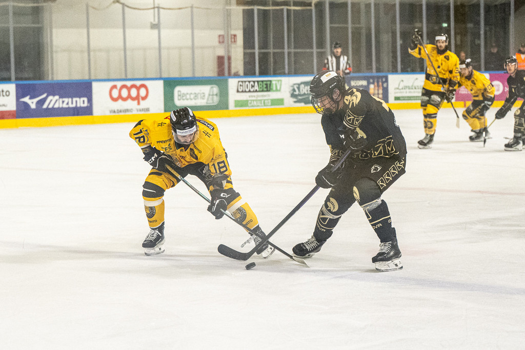 Fraschetta e poi Nardella, il pericolo numero da 103 punti della scorsa stagione, che scocca il primo tiro al 18' in power play ben parato. Mastini assassini sul gol, realizzato in inferiorità numerica in contropiede con la linea delle meraviglie: Terzago, che ha gli occhi anche sulle spalle, vede il gemello Bastille piombare davanti a Perla, lo serve ed è il vantaggio. Sono i gialloneri a creare l'occasione del raddoppio con Bertin, solo ma murato da Perla e con Pizzo.