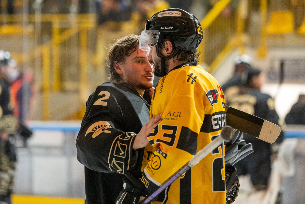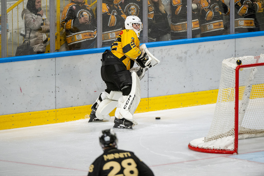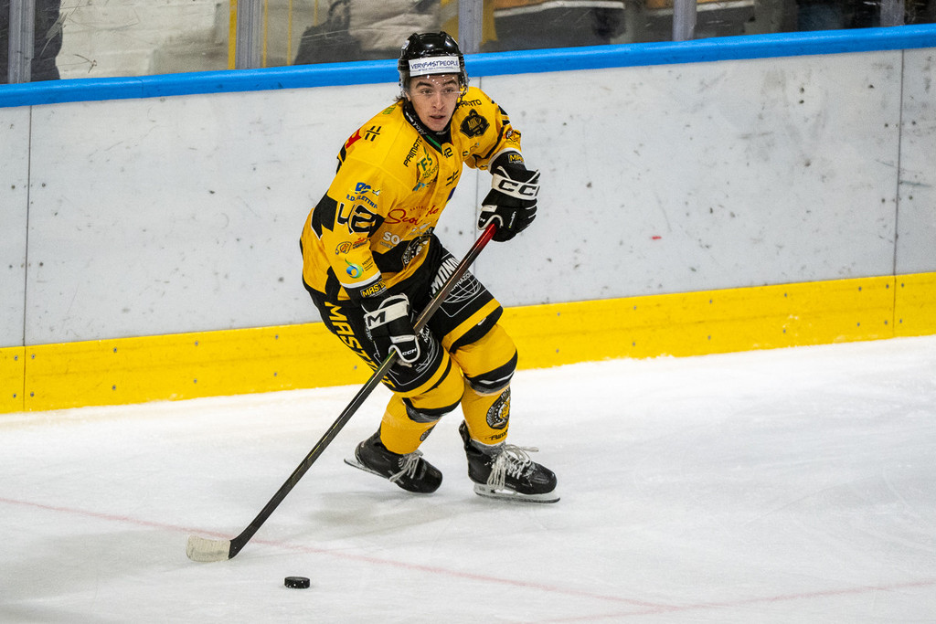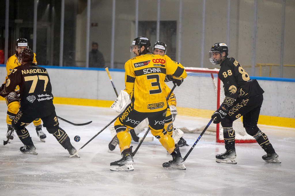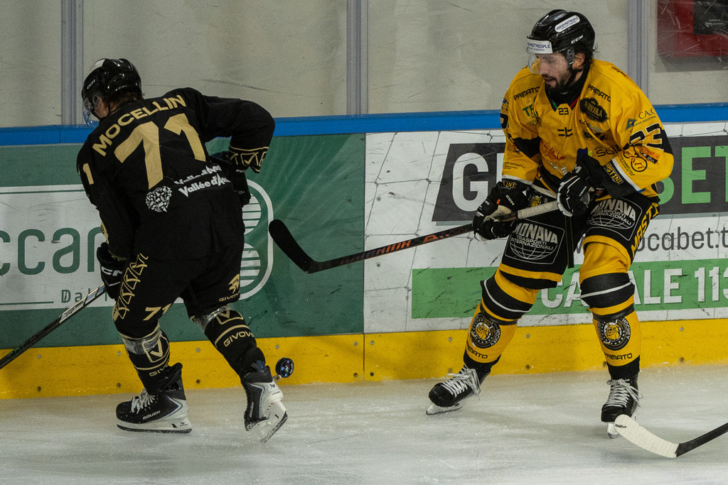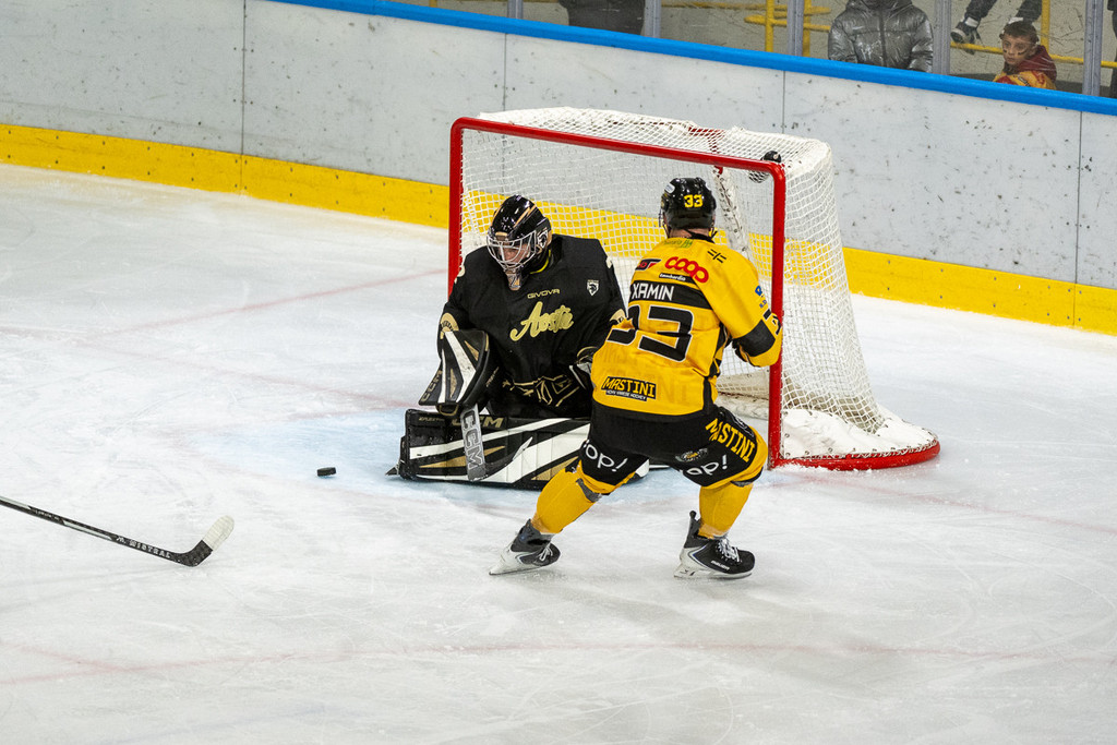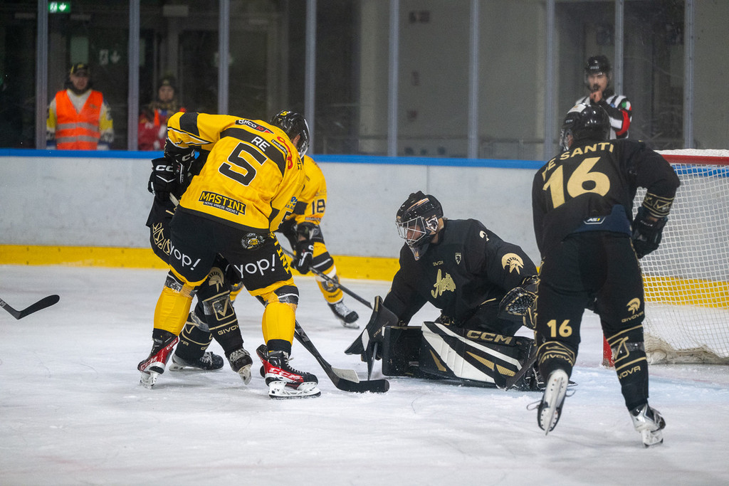 Fraschetta e poi Nardella, il pericolo numero da 103 punti della scorsa stagione, che scocca il primo tiro al 18' in power play ben parato. Mastini assassini sul gol, realizzato in inferiorità numerica in contropiede con la linea delle meraviglie: Terzago, che ha gli occhi anche sulle spalle, vede il gemello Bastille piombare davanti a Perla, lo serve ed è il vantaggio. Sono i gialloneri a creare l'occasione del raddoppio con Bertin, solo ma murato da Perla e con Pizzo.
