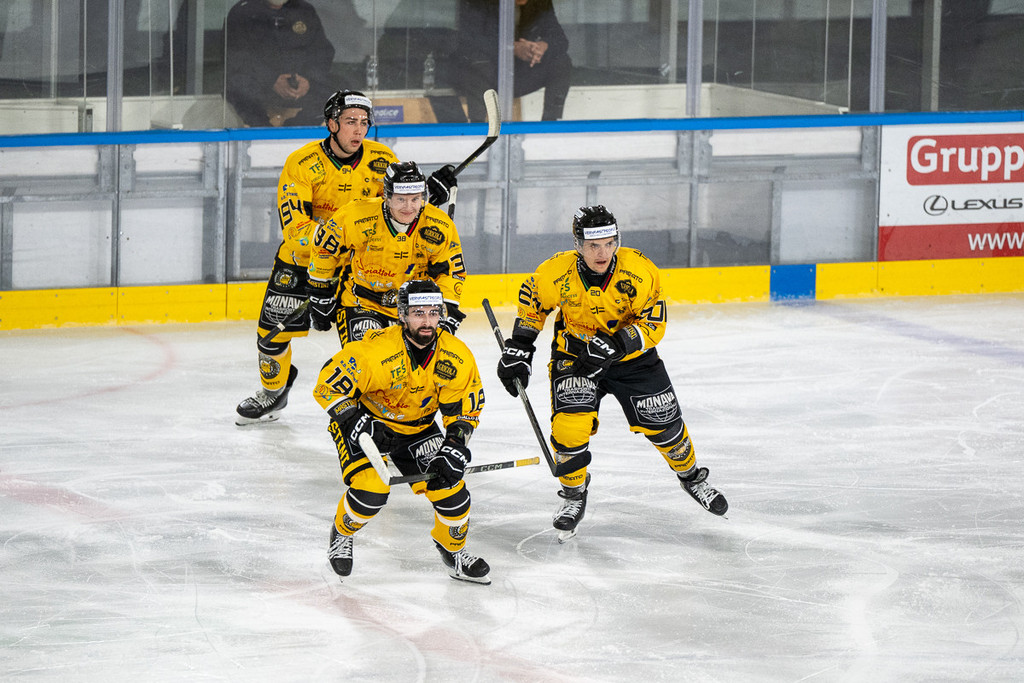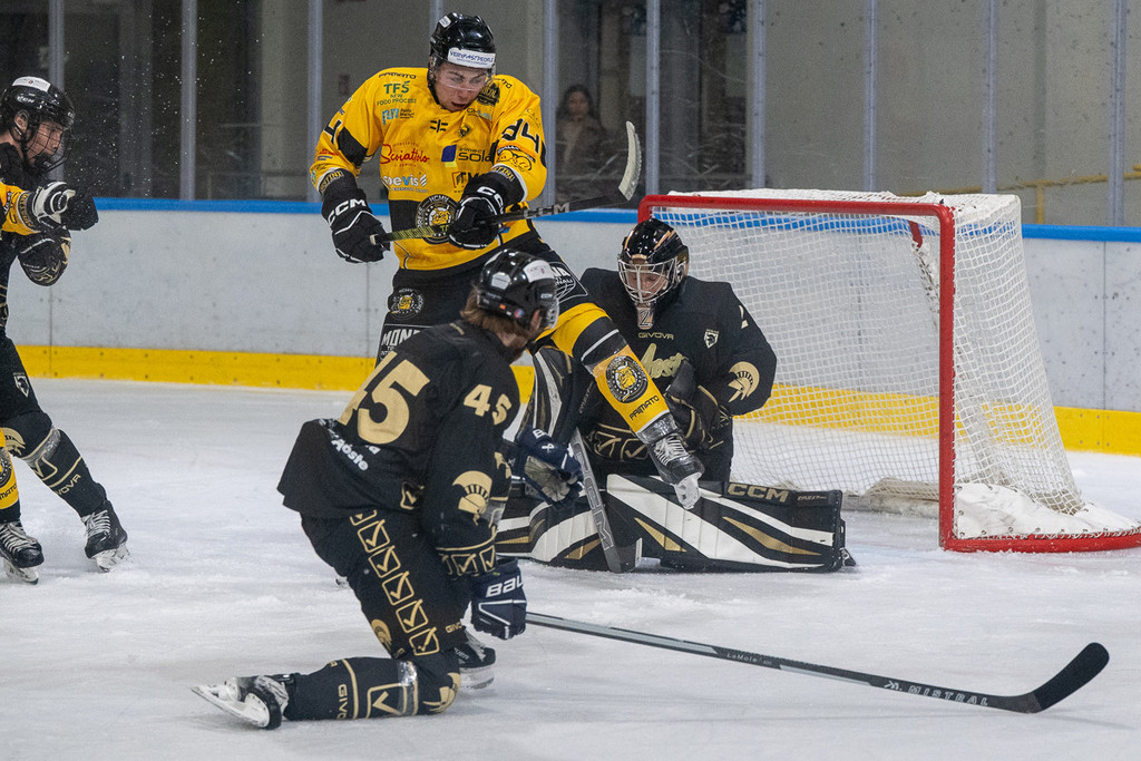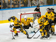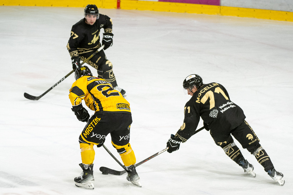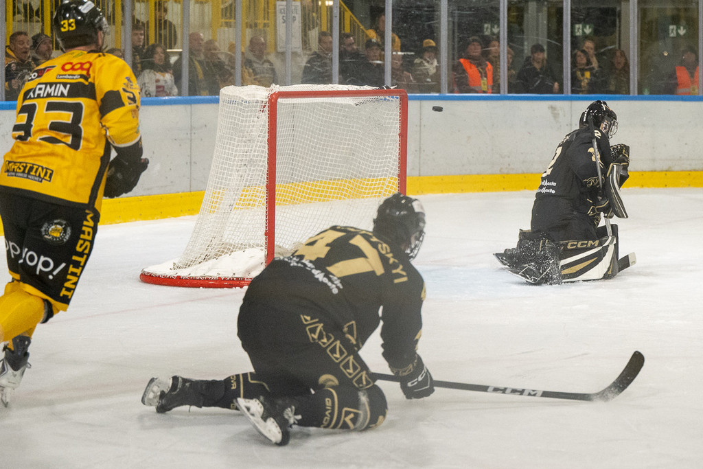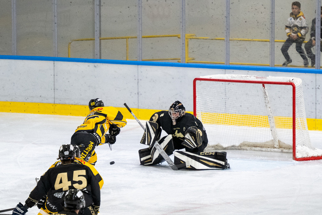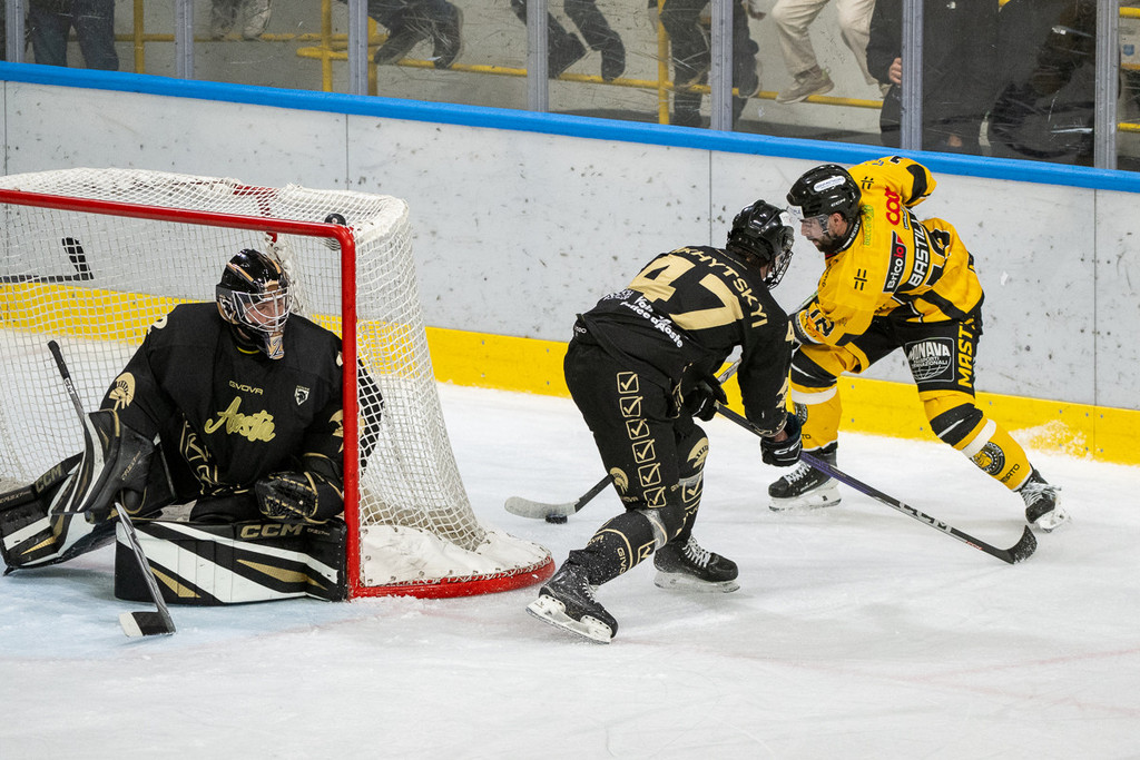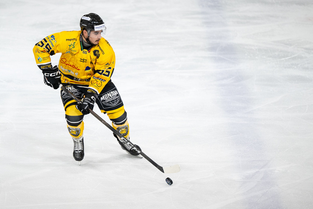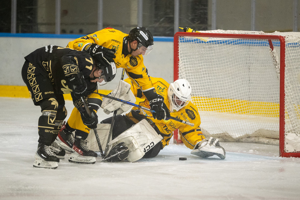 Fraschetta e poi Nardella, il pericolo numero da 103 punti della scorsa stagione, che scocca il primo tiro al 18' in power play ben parato. Mastini assassini sul gol, realizzato in inferiorità numerica in contropiede con la linea delle meraviglie: Terzago, che ha gli occhi anche sulle spalle, vede il gemello Bastille piombare davanti a Perla, lo serve ed è il vantaggio. Sono i gialloneri a creare l'occasione del raddoppio con Bertin, solo ma murato da Perla e con Pizzo.